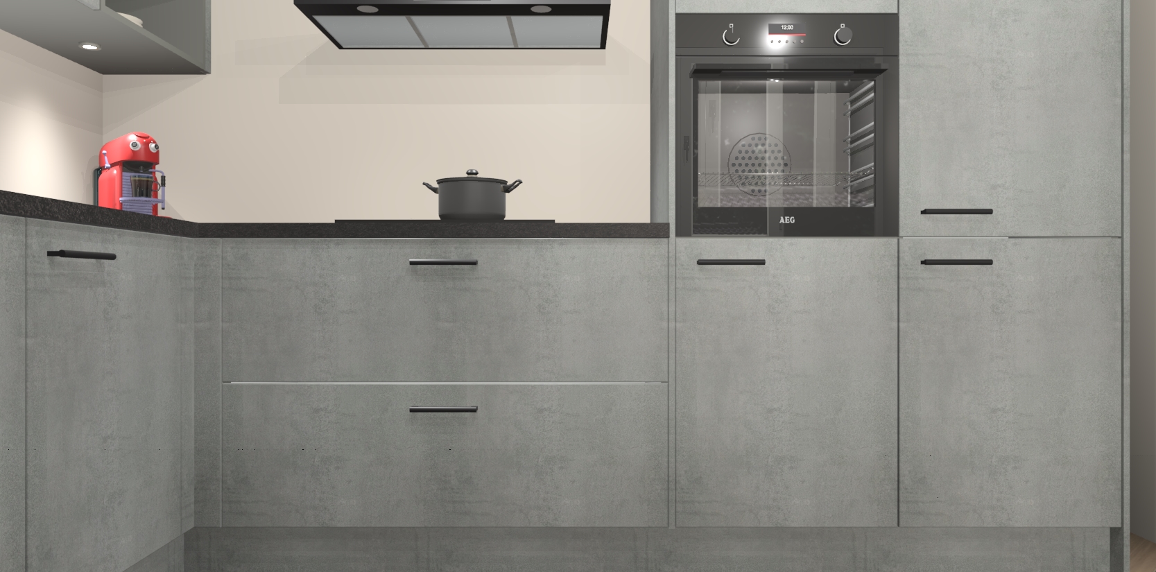 De Beton Parelgrijs keuken Cognac gaat alleen maar om de beste keukenervaring. Kies gewoon de beste apparatuur en ongeëvenaarde Duitse constructie die u thuis wilt hebben en verander uw huiskamer hartelijkheid meteen in professionaliteit. Laat de toon weten dat u gemakkelijk kan genieten van alle luxe die u verdiend? Bestel nu de Beton Parelgrijs keuken Cognac voor bij u thuis!