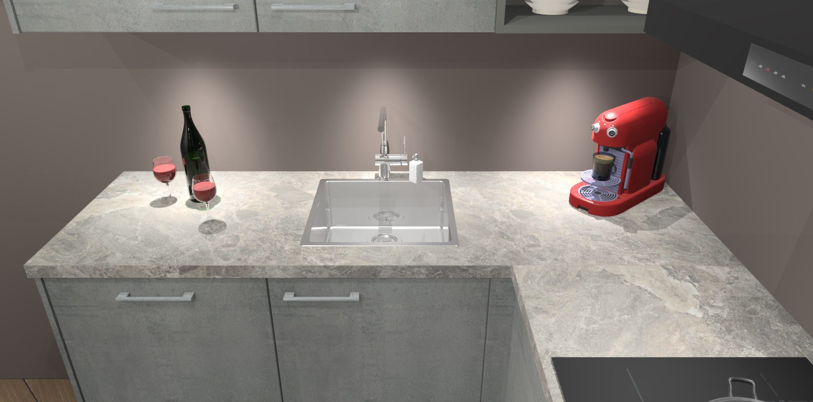 - Bij een hoekwerkblad zijn de hoeken in gevreesd en op maat gemaakt