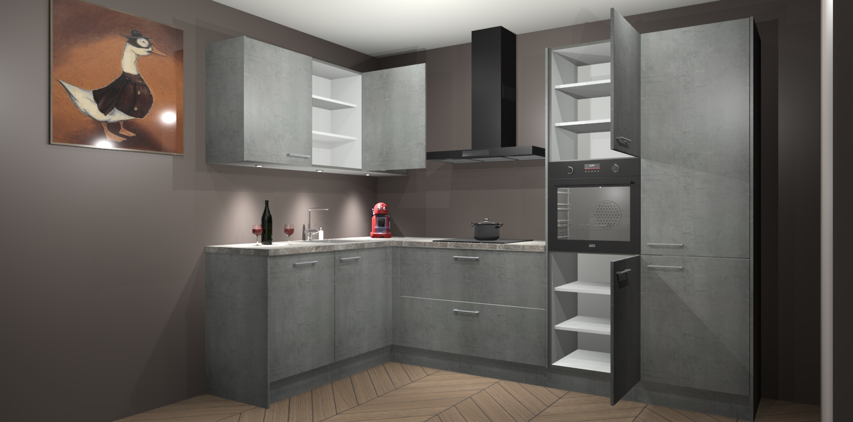 De Beton Parelgrijs keuken Cognac gaat alleen maar om de beste keukenervaring. Kies gewoon de beste apparatuur en ongeëvenaarde Duitse constructie die u thuis wilt hebben en verander uw huiskamer hartelijkheid meteen in professionaliteit. Laat de toon weten dat u gemakkelijk kan genieten van alle luxe die u verdiend? Bestel nu de Beton Parelgrijs keuken Cognac voor bij u thuis!