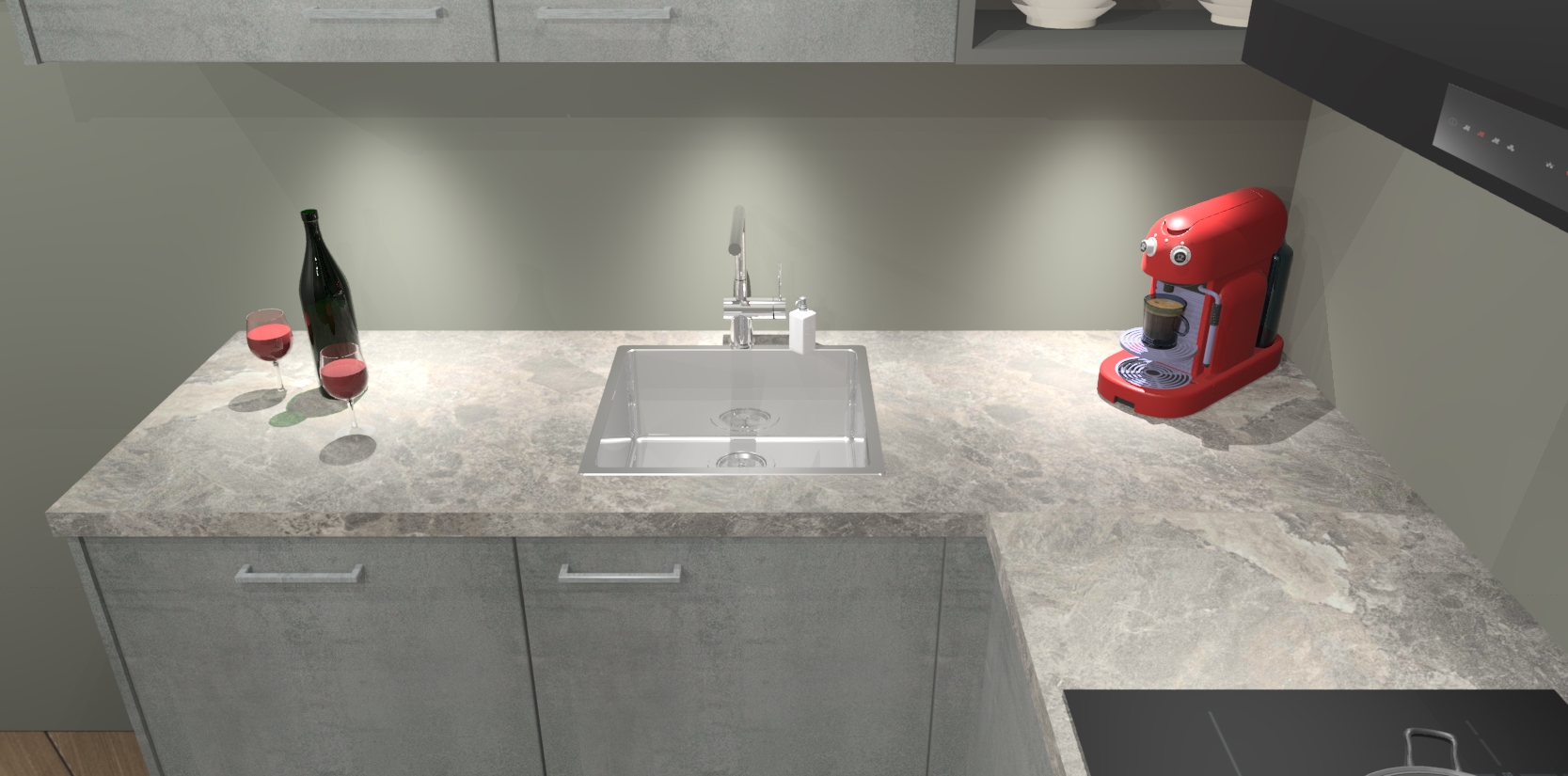 - Bij een hoekwerkblad zijn de hoeken in gevreesd en op maat gemaakt