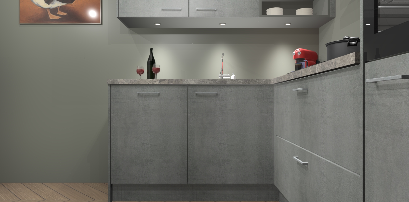 De Beton Parelgrijs keuken Cognac gaat alleen maar om de beste keukenervaring. Kies gewoon de beste apparatuur en ongeëvenaarde Duitse constructie die u thuis wilt hebben en verander uw huiskamer hartelijkheid meteen in professionaliteit. Laat de toon weten dat u gemakkelijk kan genieten van alle luxe die u verdiend? Bestel nu de Beton Parelgrijs keuken Cognac voor bij u thuis!