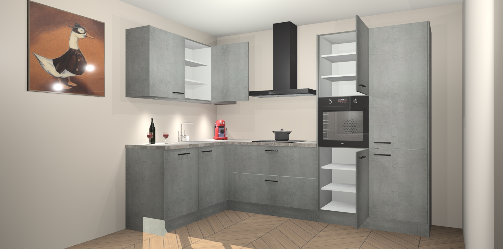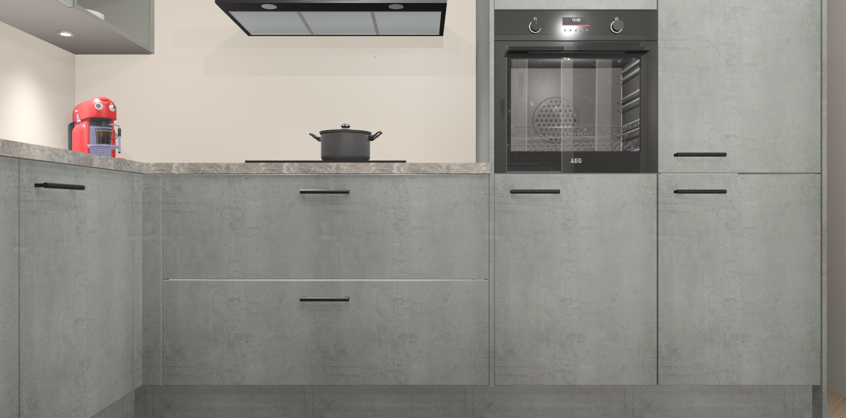 De Beton Parelgrijs keuken Cognac gaat alleen maar om de beste keukenervaring. Kies gewoon de beste apparatuur en ongeëvenaarde Duitse constructie die u thuis wilt hebben en verander uw huiskamer hartelijkheid meteen in professionaliteit. Laat de toon weten dat u gemakkelijk kan genieten van alle luxe die u verdiend? Bestel nu de Beton Parelgrijs keuken Cognac voor bij u thuis!