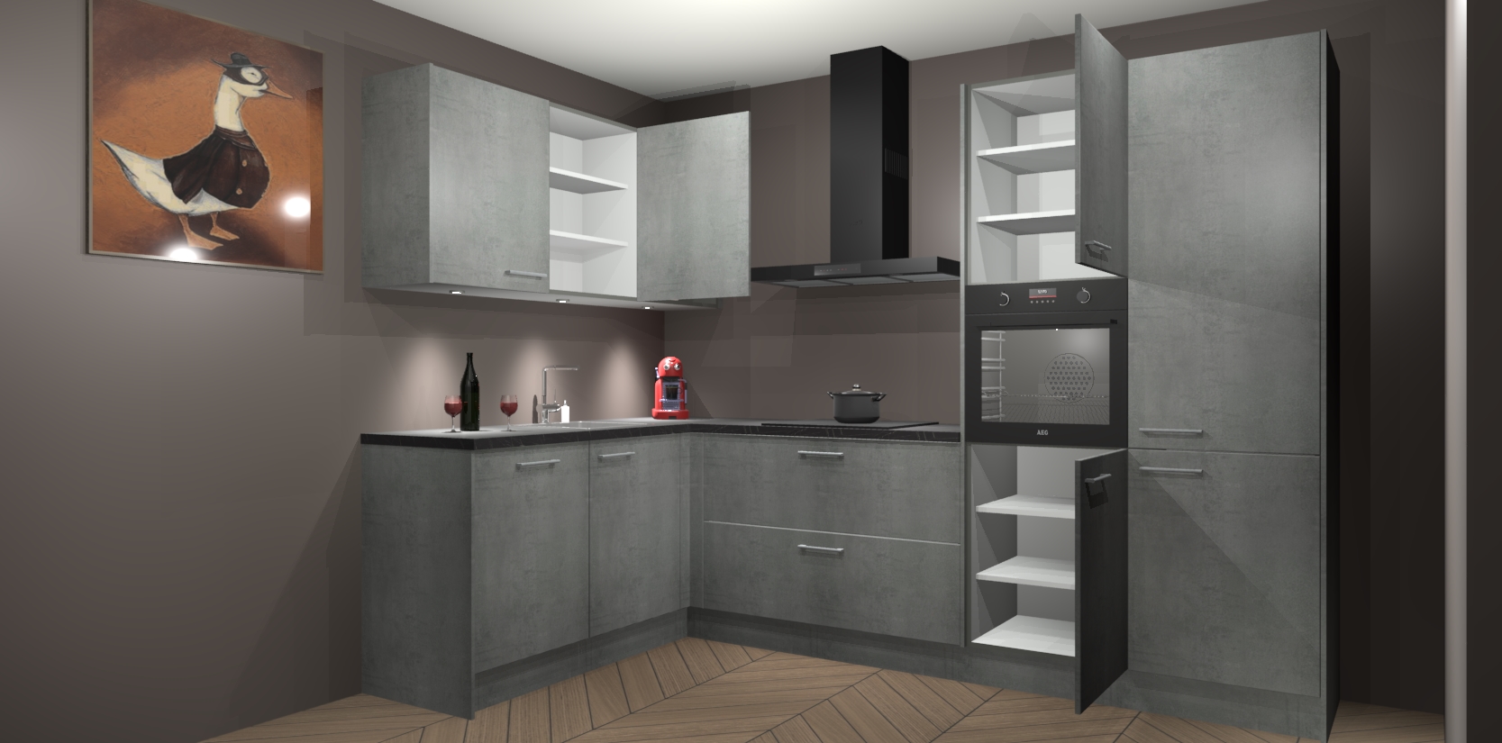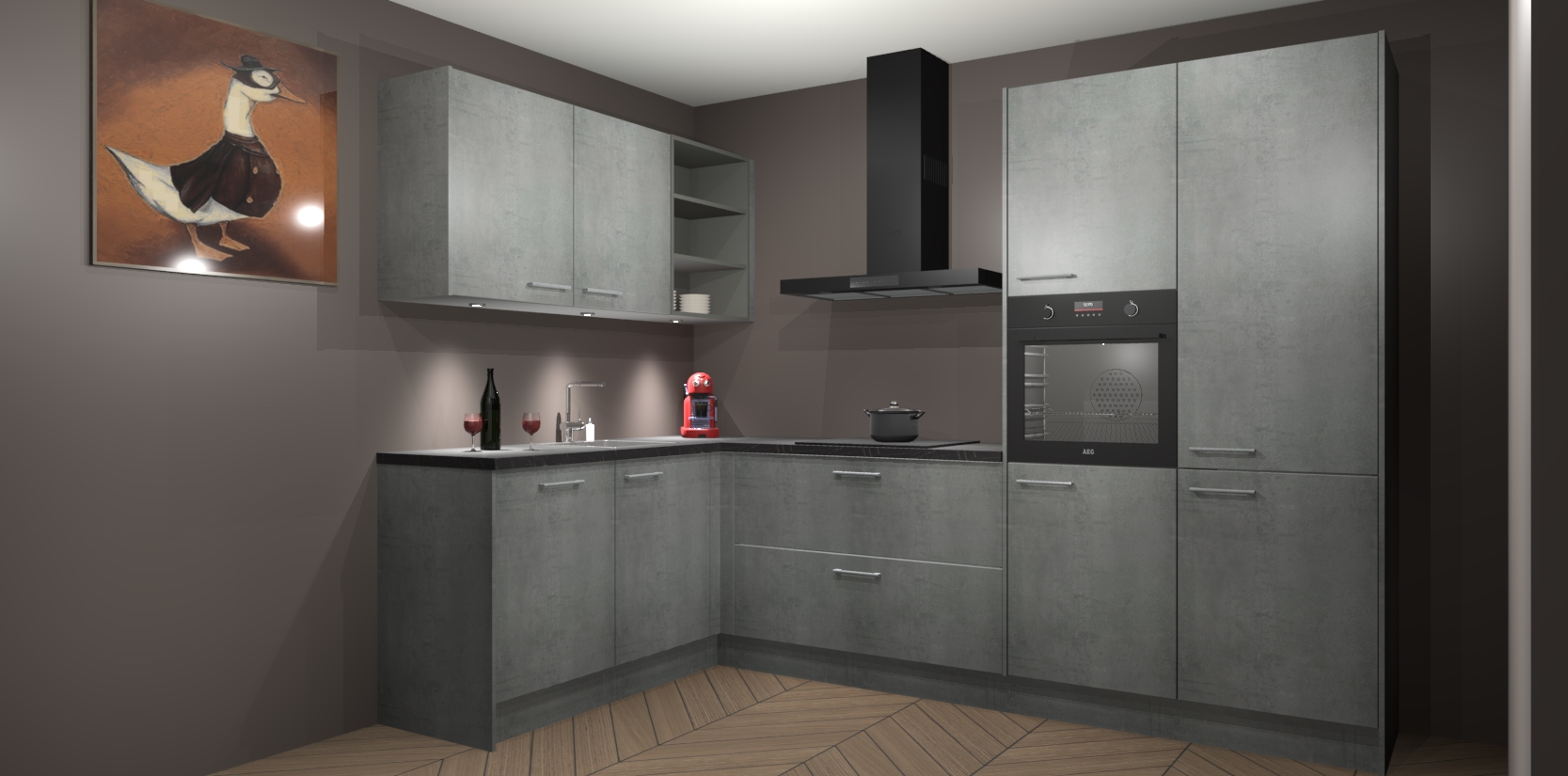 De Beton Parelgrijs keuken Cognac is een adembenemend ontwerp met een modern en tijdloos uiterlijk. Deze luxe keuken straalt echt aristocratisch uit, waardoor uw koken plezieriger zal worden! Het prachtige design begint bij de hoekkeuken, wat perfect past bij elk type interieur. Bovendien bevat deze hoogwaardige set vijf inbouwapparaten - van oven tot koelkast - die via bestelling naar AEG geüpgraded kunnen worden!
