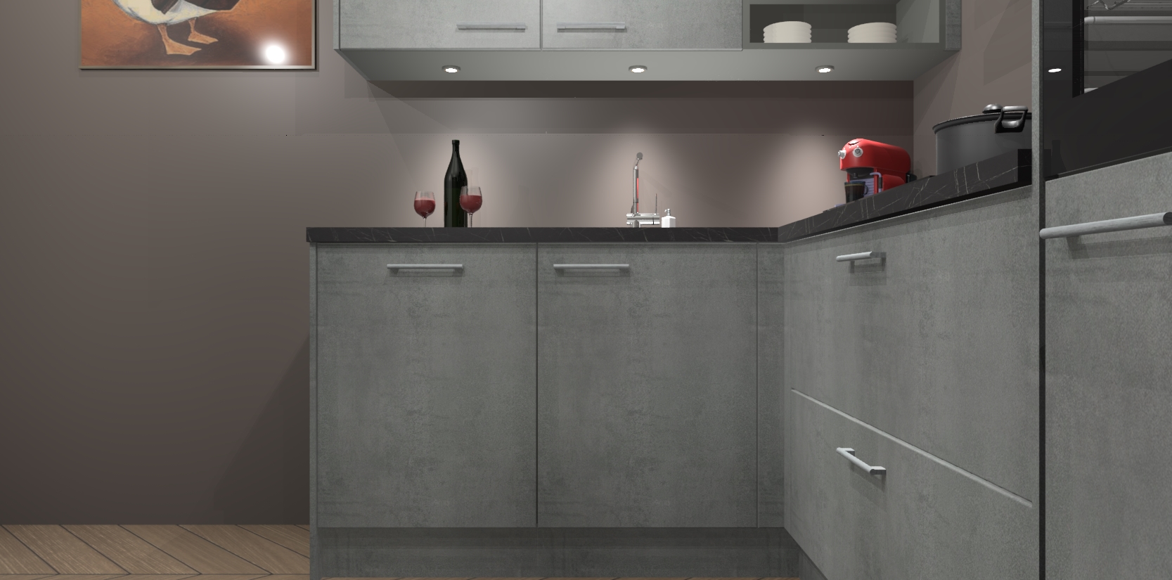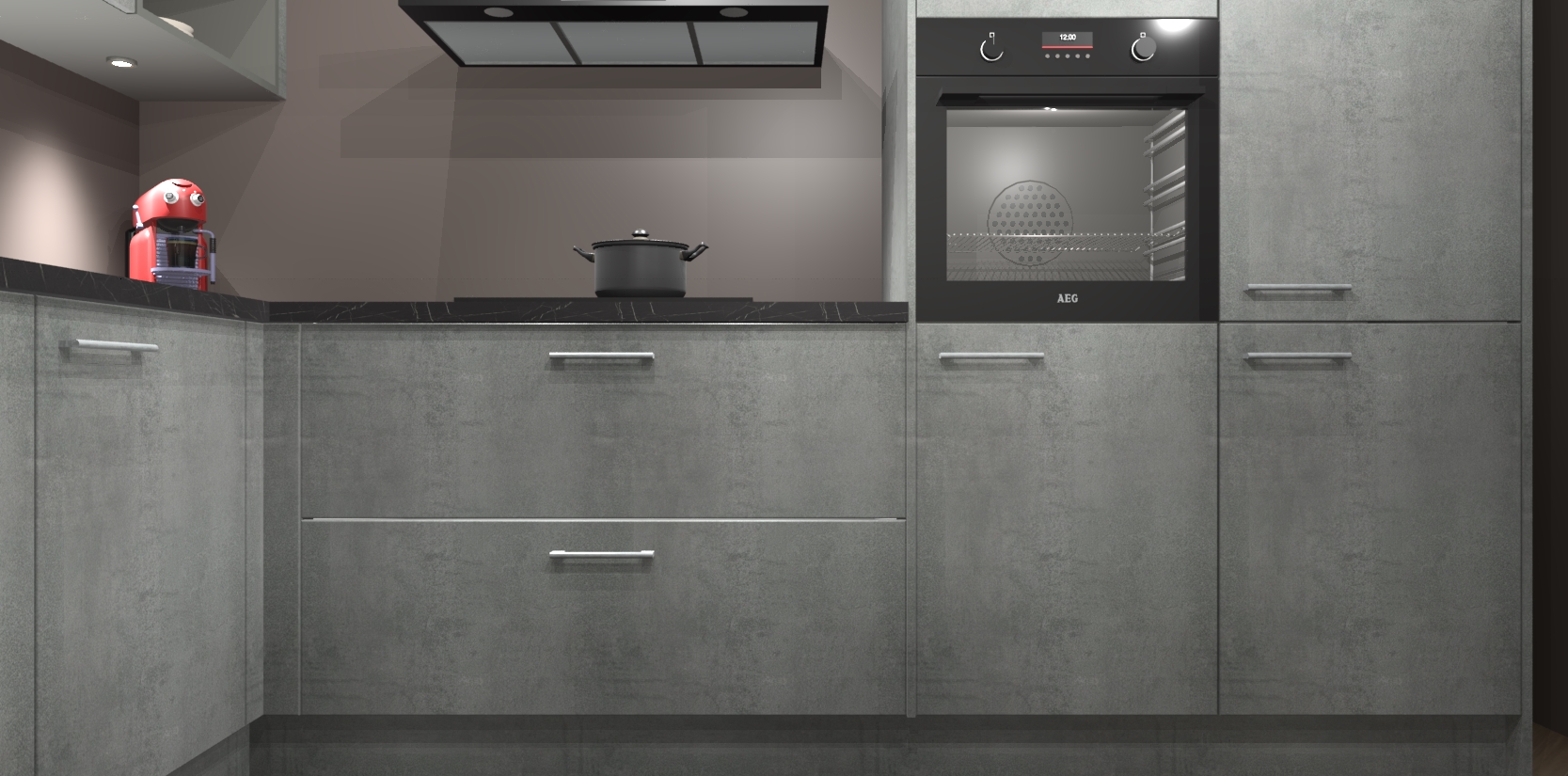 De Beton Parelgrijs keuken Cognac gaat alleen maar om de beste keukenervaring. Kies gewoon de beste apparatuur en ongeëvenaarde Duitse constructie die u thuis wilt hebben en verander uw huiskamer hartelijkheid meteen in professionaliteit. Laat de toon weten dat u gemakkelijk kan genieten van alle luxe die u verdiend? Bestel nu de Beton Parelgrijs keuken Cognac voor bij u thuis!