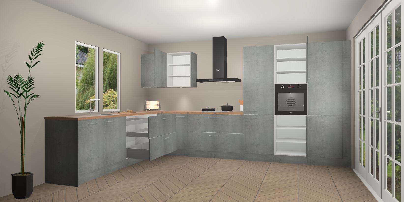 Heeft u nog apparatuur nodig? Geen probleem: de Beton Parelgrijs keuken Debrecen bevat vijf ingebouwde apparaten - een oven, inductiekookplaat, afzuigkap, vaatwasser en koelkast - die gemakkelijk kunnen worden bijgewerkt naar AEG na bestelling. En als dat nog niet genoeg is; onze kasten worden pre-geassembleerd geleverd en zijn verkrijgbaar tegen een vastgeroeste lage prijs! U hoeft nooit meer te zoeken naar goede kwaliteit en service want onze producten hebben echt Duitse kwaliteit.