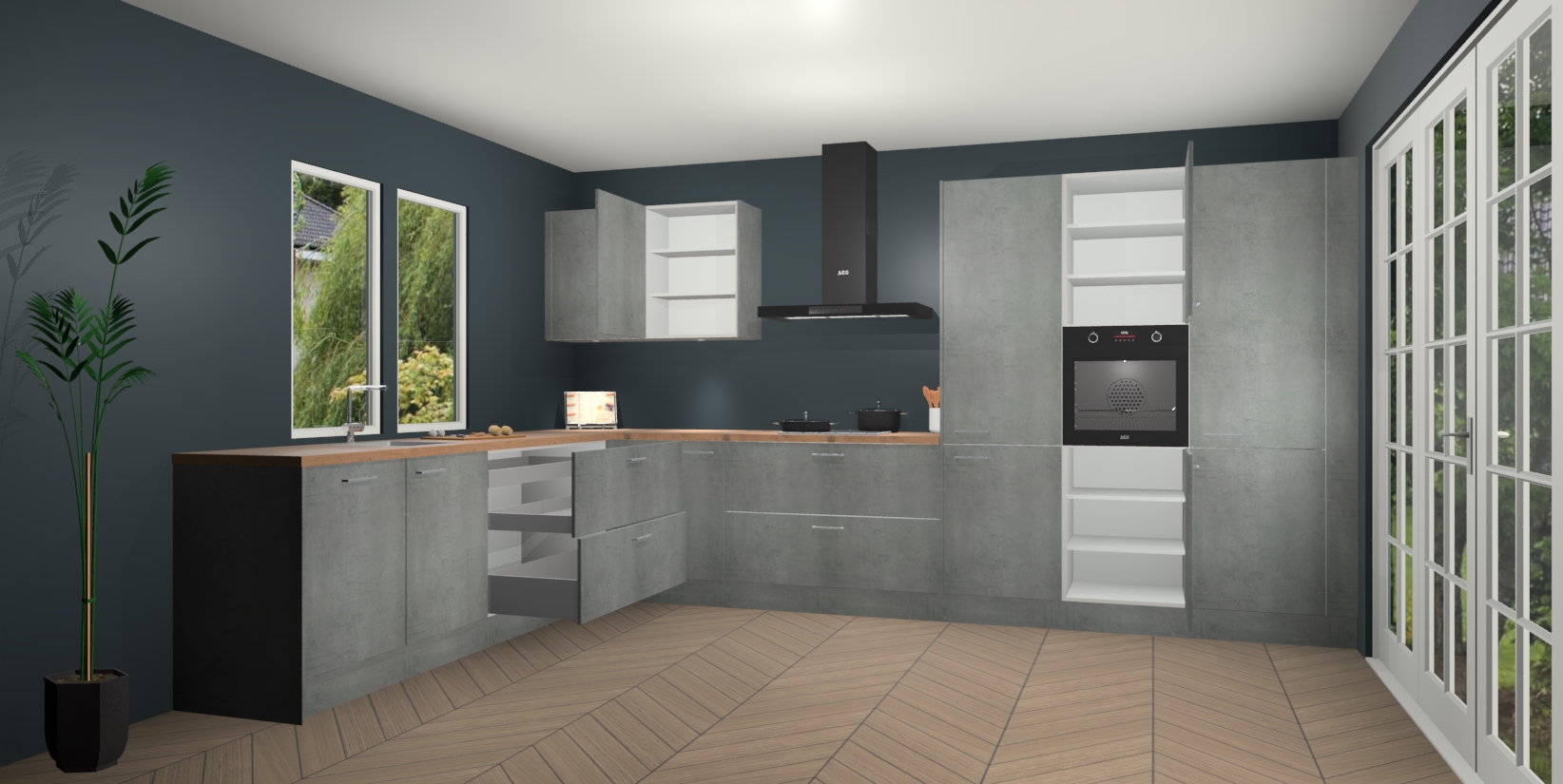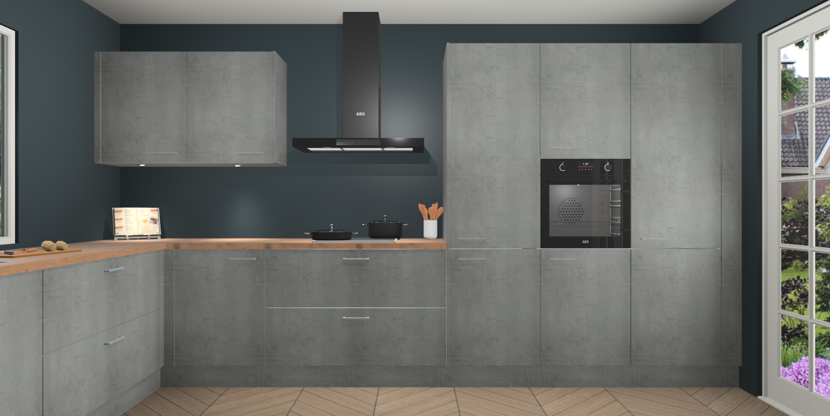 Heeft u nog apparatuur nodig? Geen probleem: de Beton Parelgrijs keuken Debrecen bevat vijf ingebouwde apparaten - een oven, inductiekookplaat, afzuigkap, vaatwasser en koelkast - die gemakkelijk kunnen worden bijgewerkt naar AEG na bestelling. En als dat nog niet genoeg is; onze kasten worden pre-geassembleerd geleverd en zijn verkrijgbaar tegen een vastgeroeste lage prijs! U hoeft nooit meer te zoeken naar goede kwaliteit en service want onze producten hebben echt Duitse kwaliteit.