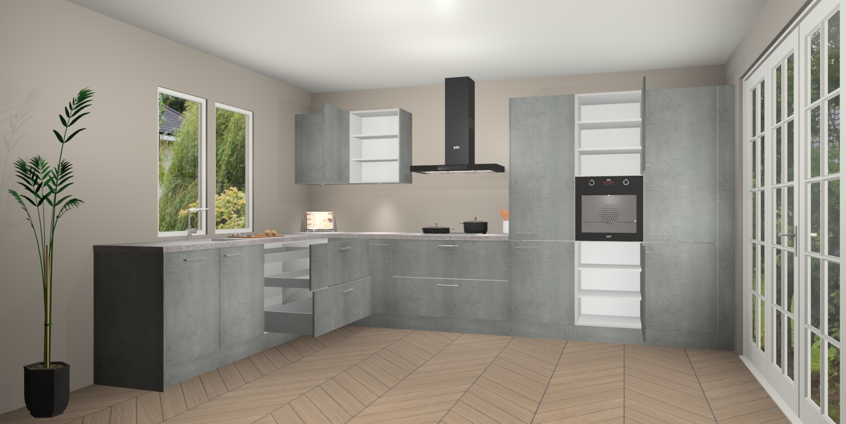 Kom dichtbij de perfecte keuken van uw dromen met de Beton Parelgrijs keuken Debrecen. Met een prachtige houtlook en eigentijds ontwerp, straalt deze keuken warmte en sfeer uit. Of u nu liefhebber bent van traditionele of moderne stijlen, er is genoeg ruimte om aan al uw behoeften te voldoen.