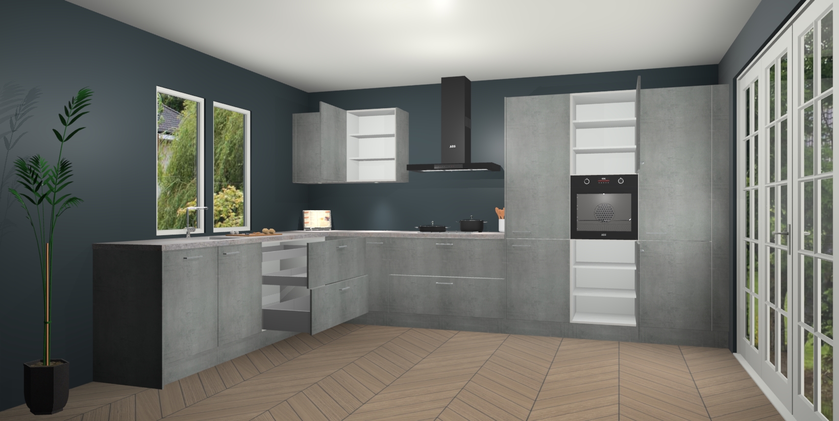 Kom dichtbij de perfecte keuken van uw dromen met de Beton Parelgrijs keuken Debrecen. Met een prachtige houtlook en eigentijds ontwerp, straalt deze keuken warmte en sfeer uit. Of u nu liefhebber bent van traditionele of moderne stijlen, er is genoeg ruimte om aan al uw behoeften te voldoen.