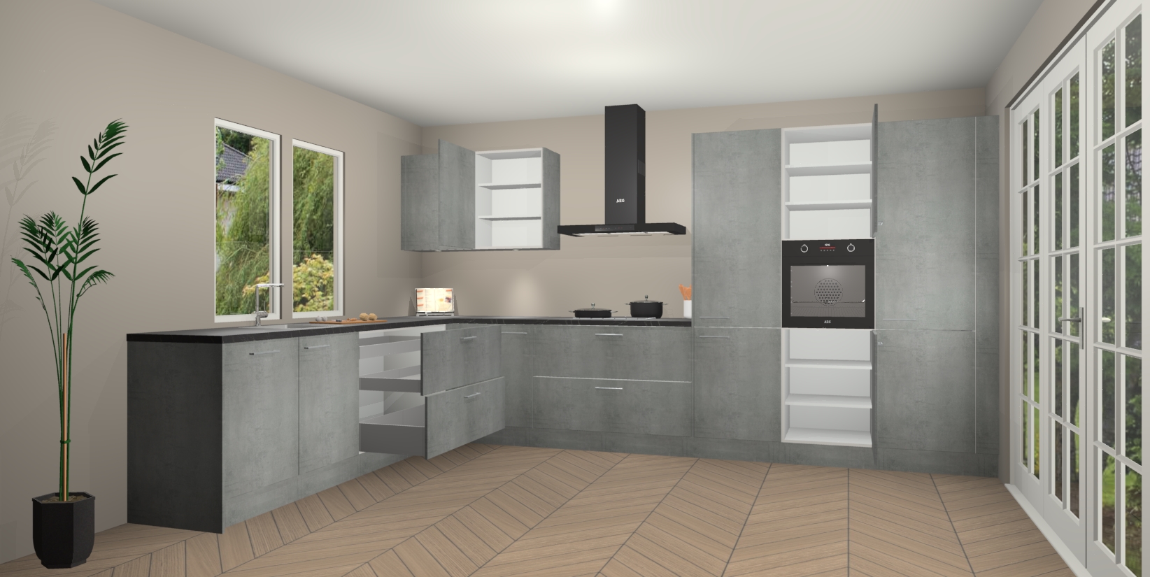 Kom dichtbij de perfecte keuken van uw dromen met de Beton Parelgrijs keuken Debrecen. Met een prachtige houtlook en eigentijds ontwerp, straalt deze keuken warmte en sfeer uit. Of u nu liefhebber bent van traditionele of moderne stijlen, er is genoeg ruimte om aan al uw behoeften te voldoen.