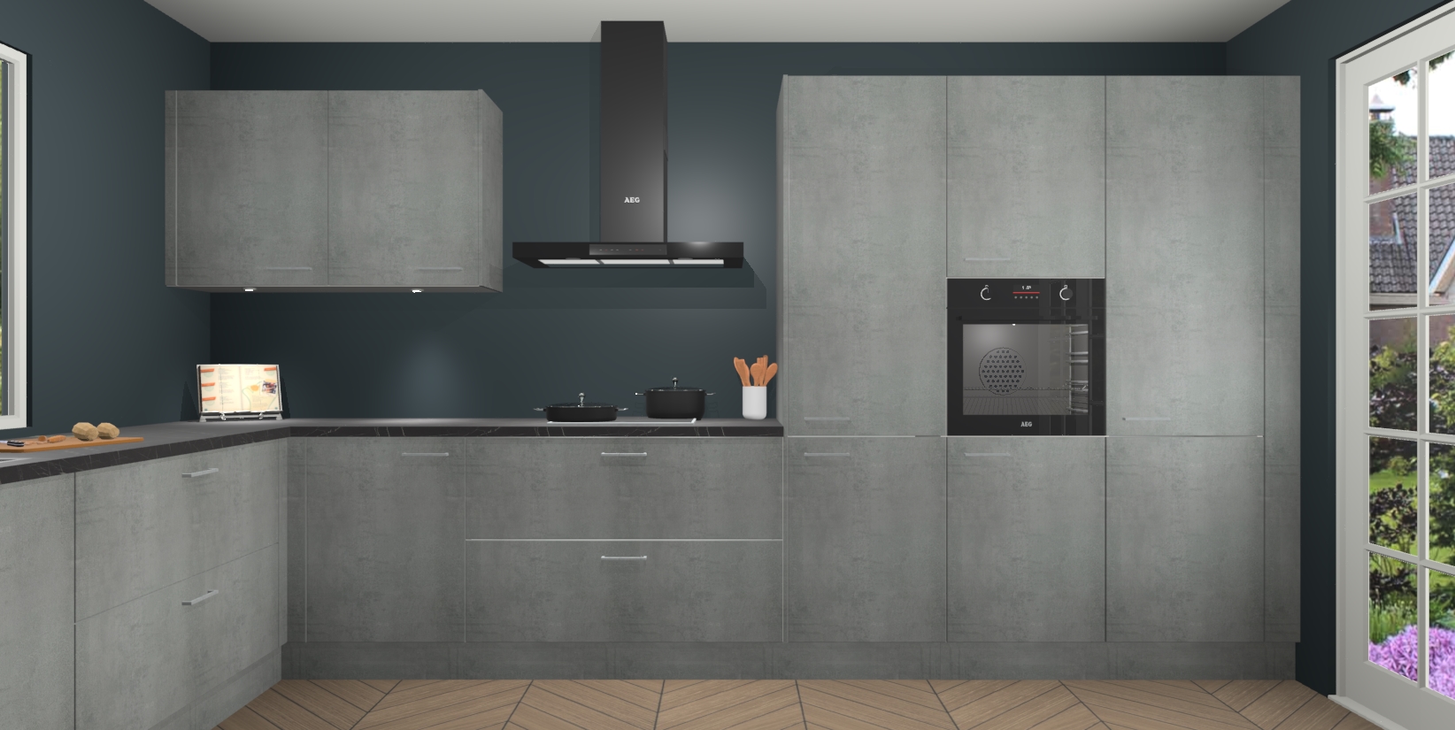 Heeft u nog apparatuur nodig? Geen probleem: de Beton Parelgrijs keuken Debrecen bevat vijf ingebouwde apparaten - een oven, inductiekookplaat, afzuigkap, vaatwasser en koelkast - die gemakkelijk kunnen worden bijgewerkt naar AEG na bestelling. En als dat nog niet genoeg is; onze kasten worden pre-geassembleerd geleverd en zijn verkrijgbaar tegen een vastgeroeste lage prijs! U hoeft nooit meer te zoeken naar goede kwaliteit en service want onze producten hebben echt Duitse kwaliteit.