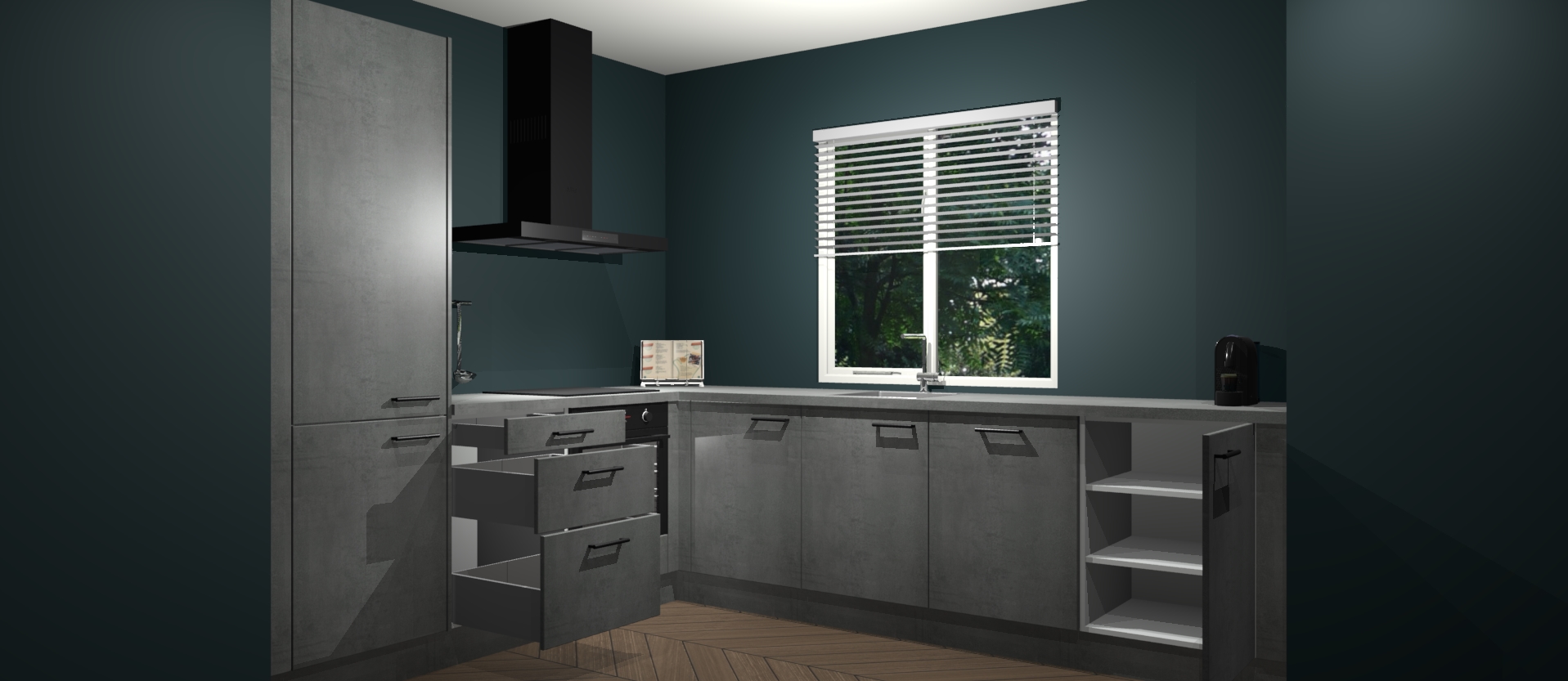 In deze box zijn alle kleuren verzameld van de deuren en werkbladen. Vraag de gratis kleurenbox aan en kijk thuis rustig verder!
