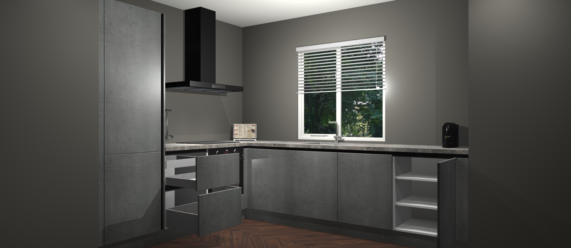 Maak kennis met de Beton Parelgrijs keuken Doha - de perfecte aanvulling voor uw moderne keuken! Ervaar tijdloos design, elegantie en een chique uitstraling met onze zwarte handgrepen, soft-close deuren en veel opbergruimte. Dit alles wordt aangeboden tegen een vaste lage prijs voor ongeëvenaarde Duitse keukenkwaliteit!