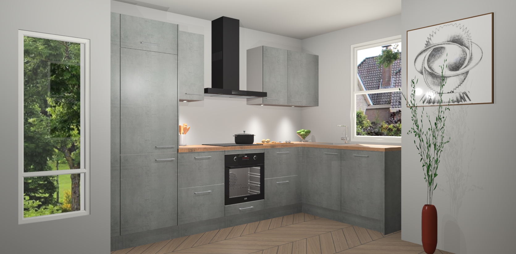 Bent u op zoek naar een moderne en tijdloze keuken die schoonheid in uw huis brengt? Zoek dan niet verder dan de Beton Parelgrijs keuken Geneve - de perfecte keuken voor al uw wensen. Deze hoekkeuken biedt de hoogste Duitse kwaliteit voor een vaste lage prijs en is zeker een blikvanger in uw huis!