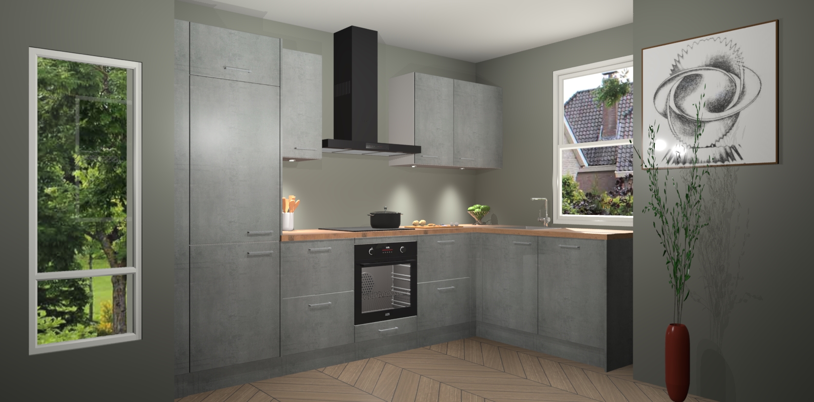De Beton Parelgrijs keuken Geneve is precies wat u nodig heeft als u op zoek bent naar modern design, versmolten met tijdloze schoonheid. De strakke afwerking voegt klasse toe terwijl het toch een uitnodigende sfeer behoudt; zeker om zowel gasten als uzelf te inspireren om in stijl te gaan koken! En nog beter, het zal uw budget niet breken - dus waarom wachten? Met de Beton Parelgrijs keuken Geneve bent u verzekerd van kwaliteit zonder in te leveren op de prijs!