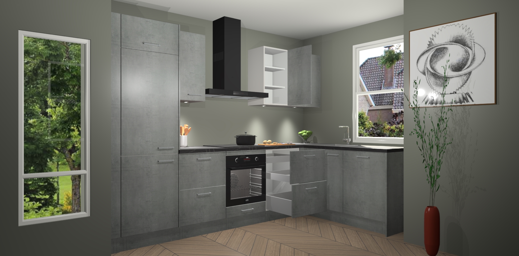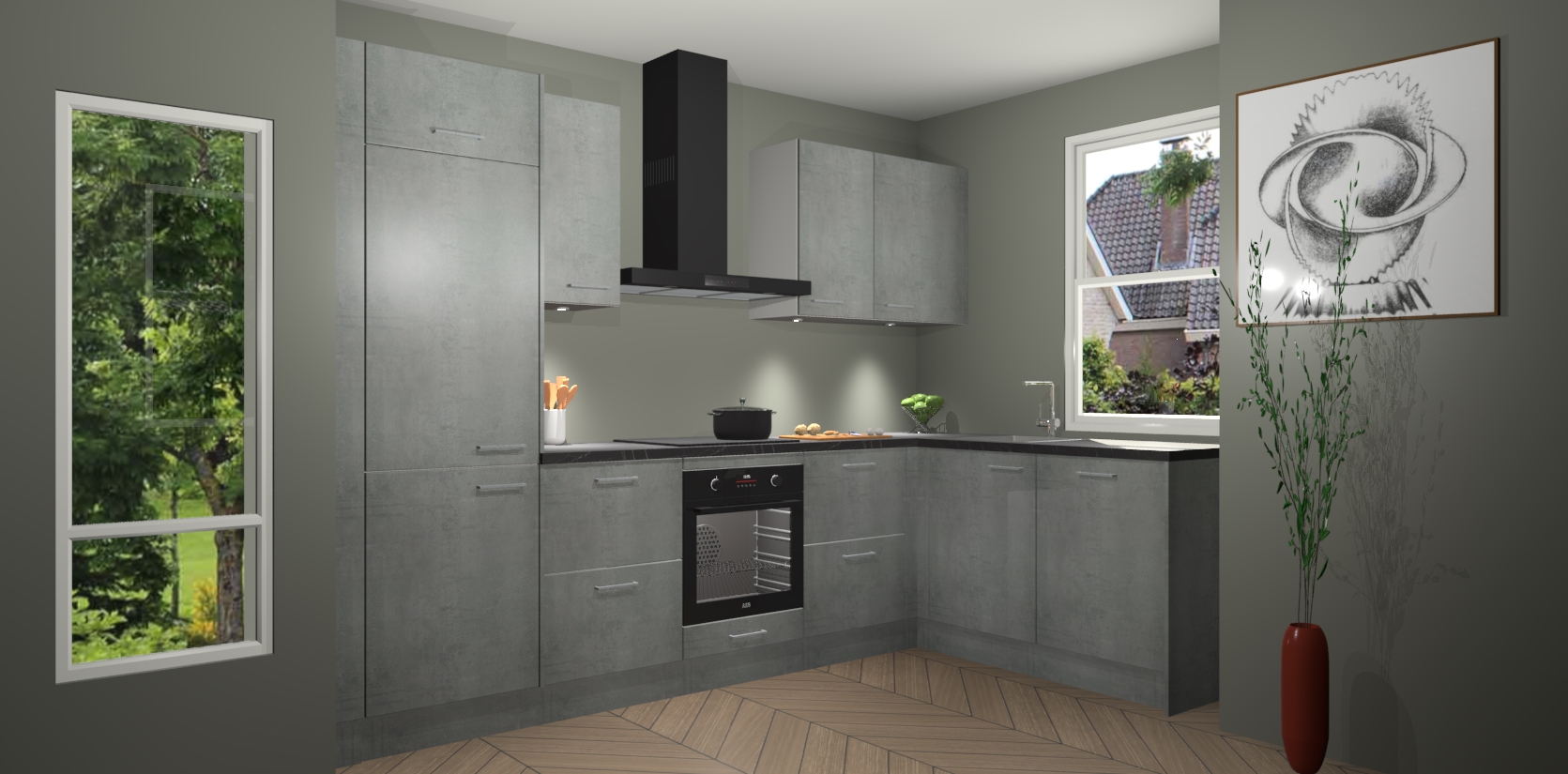 De Beton Parelgrijs keuken Geneve is precies wat u nodig heeft als u op zoek bent naar modern design, versmolten met tijdloze schoonheid. De strakke afwerking voegt klasse toe terwijl het toch een uitnodigende sfeer behoudt; zeker om zowel gasten als uzelf te inspireren om in stijl te gaan koken! En nog beter, het zal uw budget niet breken - dus waarom wachten? Met de Beton Parelgrijs keuken Geneve bent u verzekerd van kwaliteit zonder in te leveren op de prijs!