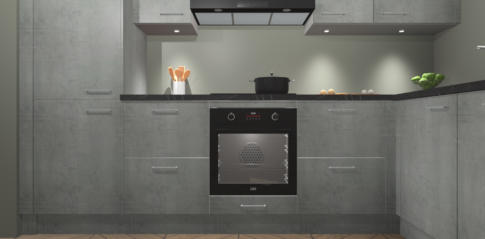 De Beton Parelgrijs keuken Geneve is uitgerust met 5 inbouwapparaten - een oven, inductiekookplaat, afzuigkap, vaatwasser en koelkast - voor al uw kook- en bewaarbehoeftes. U kunt deze apparaten desgewenst eenvoudig upgraden naar AEG of de oven omruilen voor een combimagnetron na het plaatsen van uw bestelling. En met de soft close deuren, voldoende opbergruimte en kasten die voorgemonteerd worden geleverd, bent u in een mum van tijd klaar om heerlijke maaltijden te bereiden!