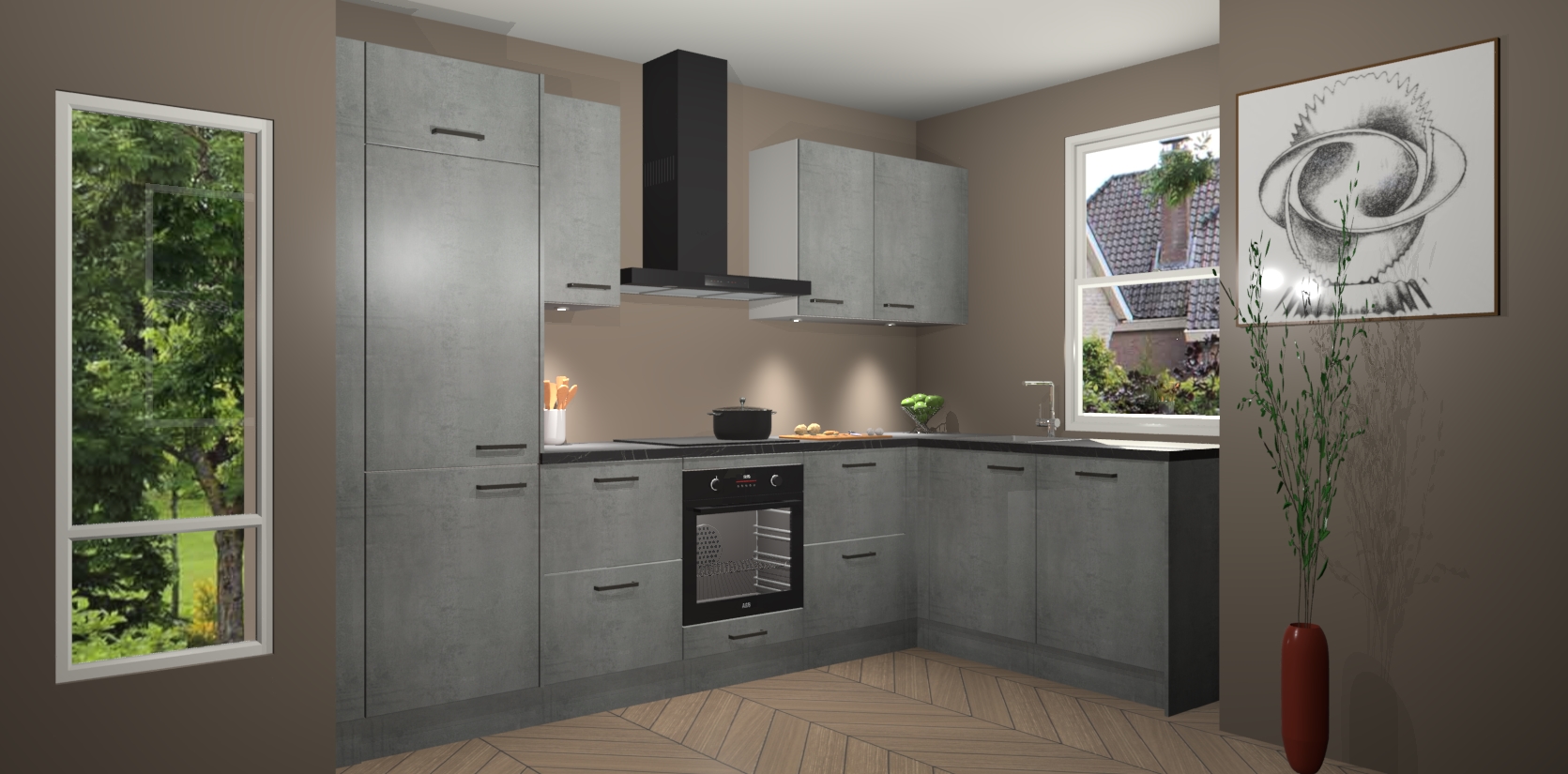De Beton Parelgrijs keuken Geneve is precies wat u nodig heeft als u op zoek bent naar modern design, versmolten met tijdloze schoonheid. De strakke afwerking voegt klasse toe terwijl het toch een uitnodigende sfeer behoudt; zeker om zowel gasten als uzelf te inspireren om in stijl te gaan koken! En nog beter, het zal uw budget niet breken - dus waarom wachten? Met de Beton Parelgrijs keuken Geneve bent u verzekerd van kwaliteit zonder in te leveren op de prijs!