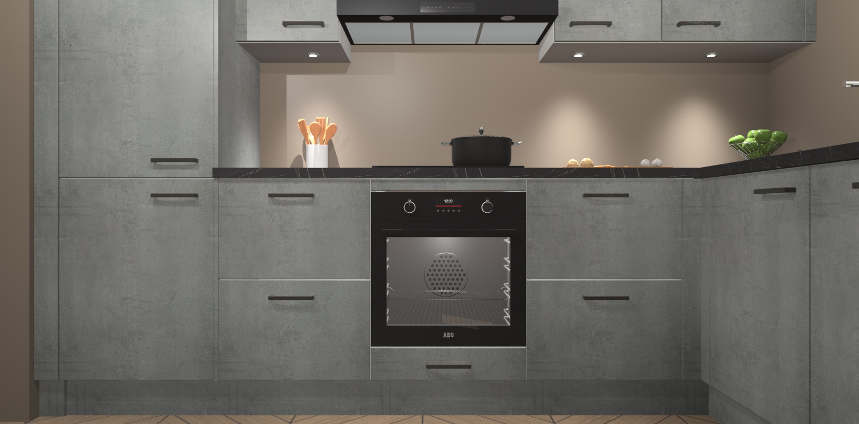 De Beton Parelgrijs keuken Geneve is uitgerust met 5 inbouwapparaten - een oven, inductiekookplaat, afzuigkap, vaatwasser en koelkast - voor al uw kook- en bewaarbehoeftes. U kunt deze apparaten desgewenst eenvoudig upgraden naar AEG of de oven omruilen voor een combimagnetron na het plaatsen van uw bestelling. En met de soft close deuren, voldoende opbergruimte en kasten die voorgemonteerd worden geleverd, bent u in een mum van tijd klaar om heerlijke maaltijden te bereiden!