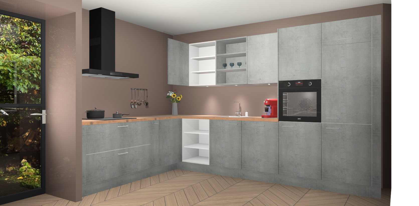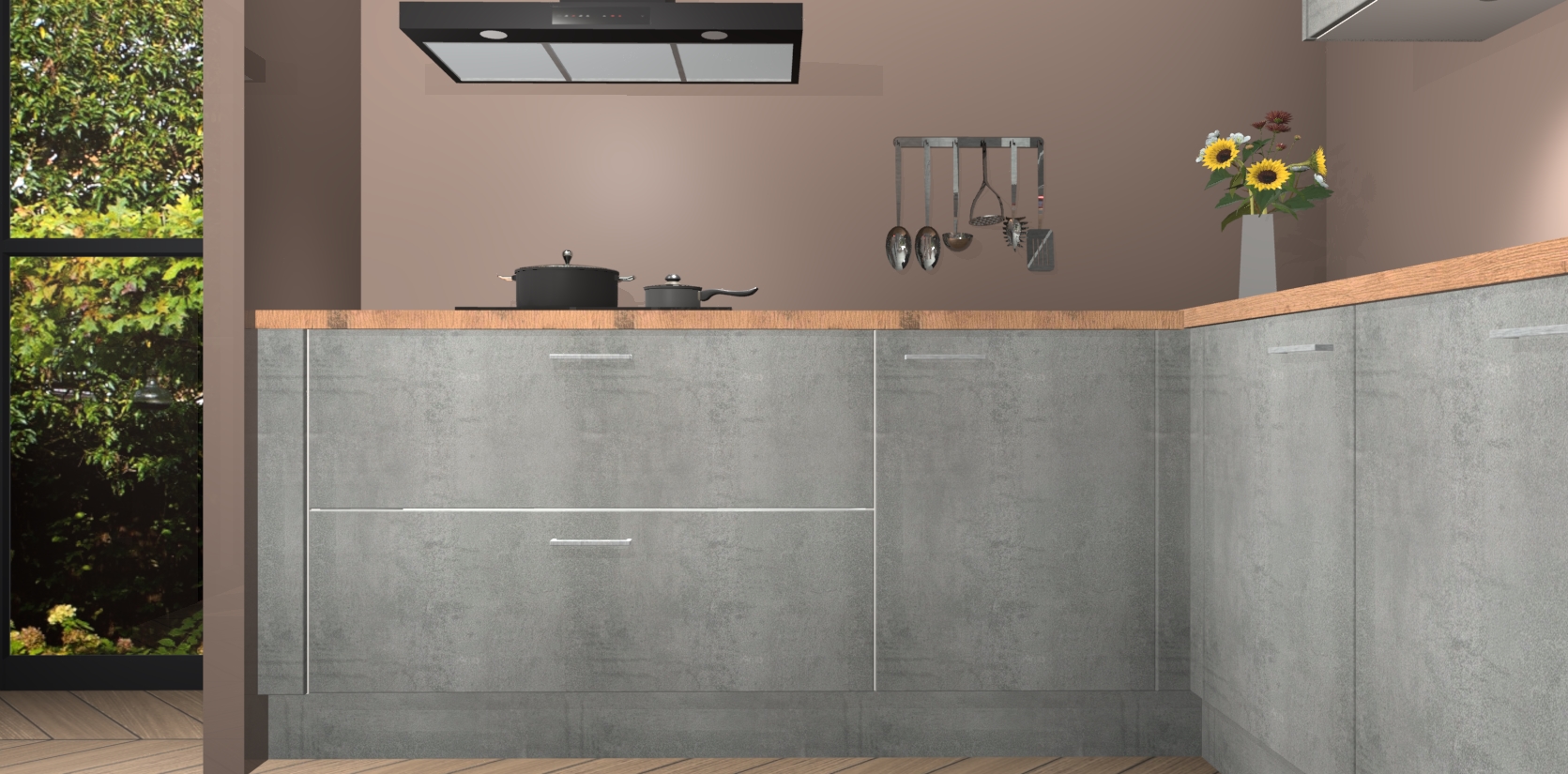 Inclusief plinten, stelpoten en werkblad