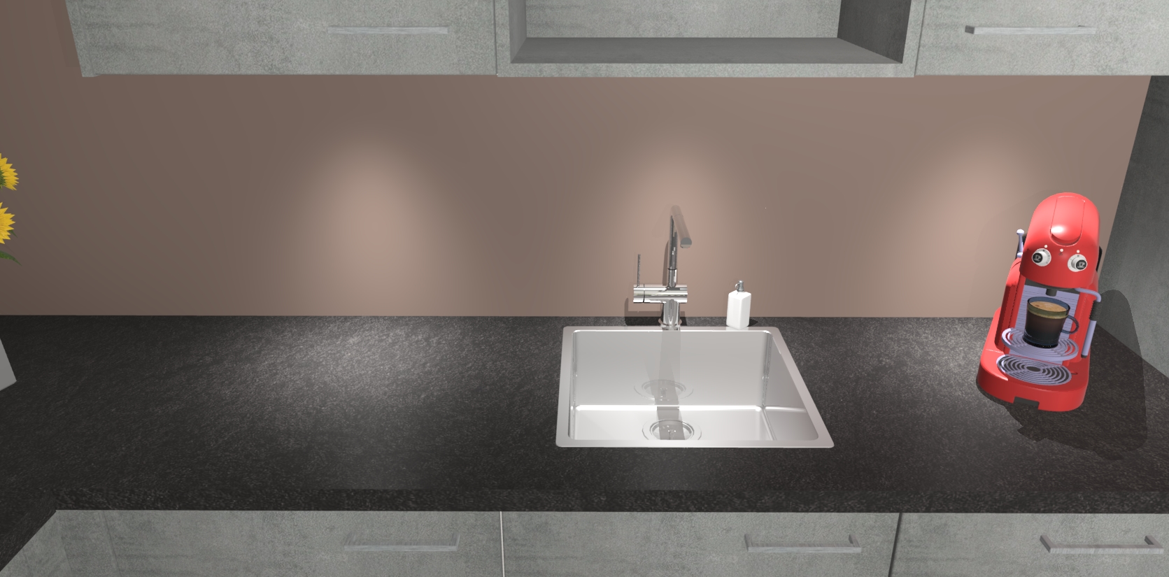 - De spoelbak is nog niet in gevreesd. Dit dient tijdens het werk gedaan te worden