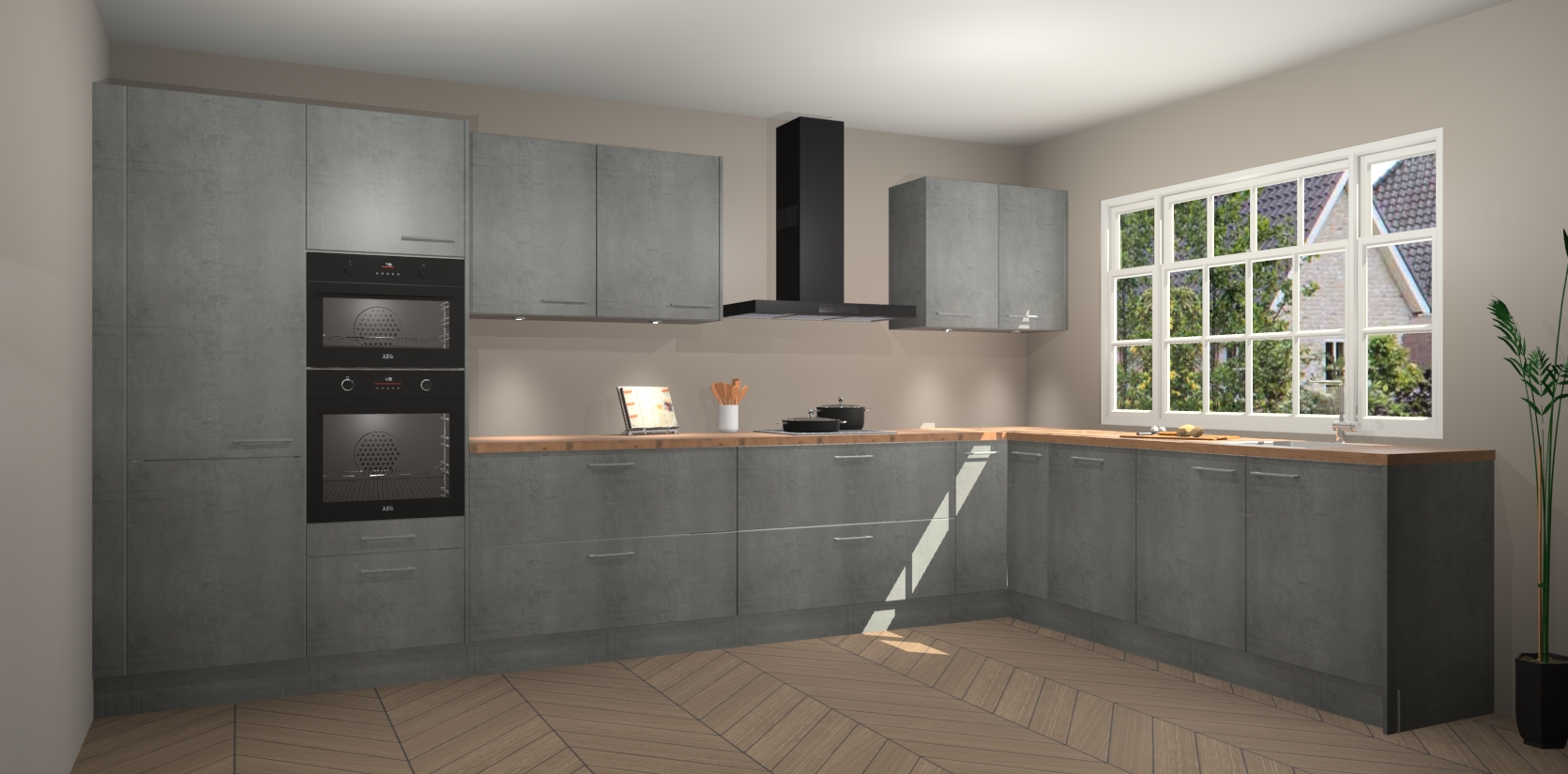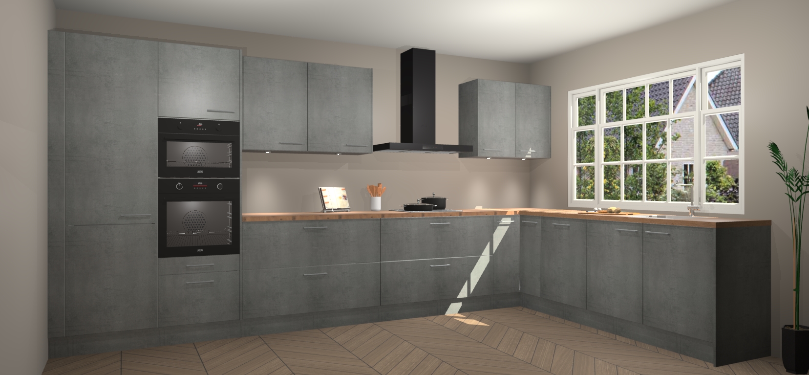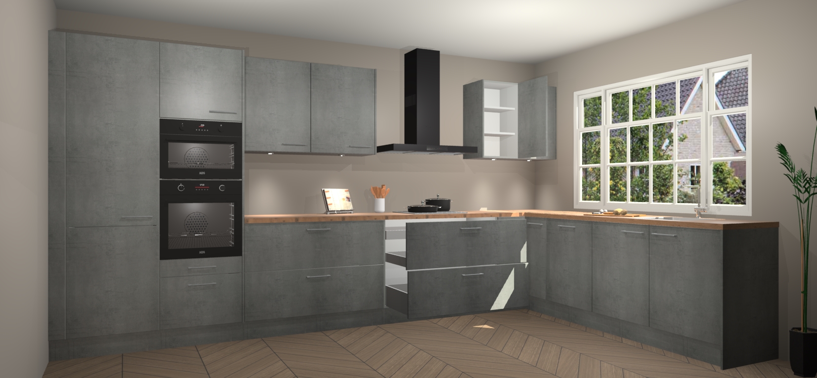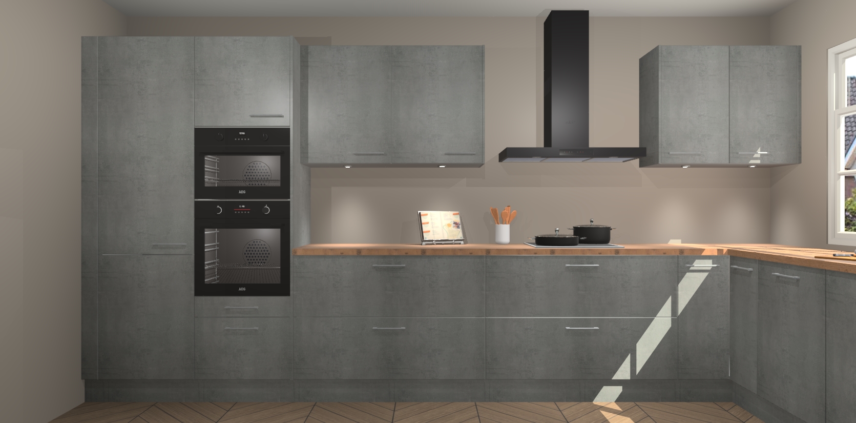 Heeft u nog apparatuur nodig? Geen probleem: de beton parelgrijs keuken Graz bevat vijf ingebouwde apparaten - een oven, inductiekookplaat, afzuigkap, vaatwasser en koelkast - die gemakkelijk kunnen worden bijgewerkt naar AEG na bestelling. En als dat nog niet genoeg is; onze kasten worden pre-geassembleerd geleverd en zijn verkrijgbaar tegen een vastgeroeste lage prijs! U hoeft nooit meer te zoeken naar goede kwaliteit en service want onze producten hebben echt Duitse kwaliteit.