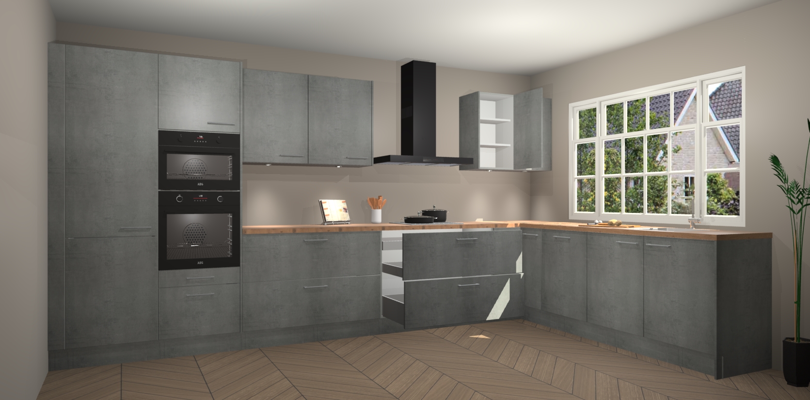Inclusief plinten, stelpoten en werkblad
