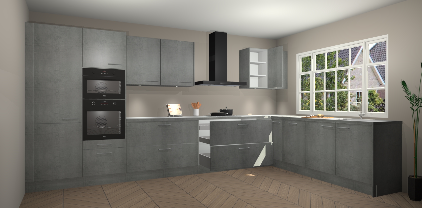 Kom dichtbij de perfecte keuken van uw dromen met de beton parelgrijs keuken Graz. Met een prachtige houtlook en eigentijds ontwerp, straalt deze keuken warmte en sfeer uit. Of u nu liefhebber bent van traditionele of moderne stijlen, er is genoeg ruimte om aan al uw behoeften te voldoen.