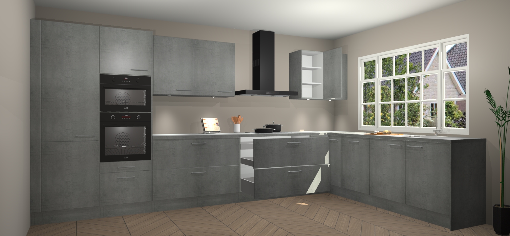 Heeft u nog apparatuur nodig? Geen probleem: de beton parelgrijs keuken Graz bevat vijf ingebouwde apparaten - een oven, inductiekookplaat, afzuigkap, vaatwasser en koelkast - die gemakkelijk kunnen worden bijgewerkt naar AEG na bestelling. En als dat nog niet genoeg is; onze kasten worden pre-geassembleerd geleverd en zijn verkrijgbaar tegen een vastgeroeste lage prijs! U hoeft nooit meer te zoeken naar goede kwaliteit en service want onze producten hebben echt Duitse kwaliteit.
