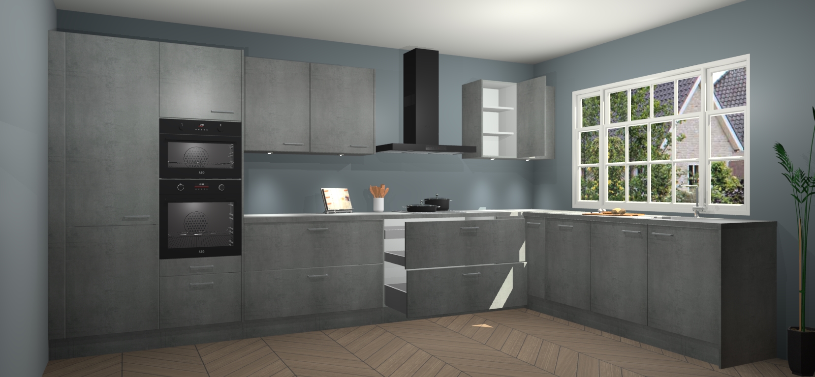 Kom dichtbij de perfecte keuken van uw dromen met de beton parelgrijs keuken Graz. Met een prachtige houtlook en eigentijds ontwerp, straalt deze keuken warmte en sfeer uit. Of u nu liefhebber bent van traditionele of moderne stijlen, er is genoeg ruimte om aan al uw behoeften te voldoen.