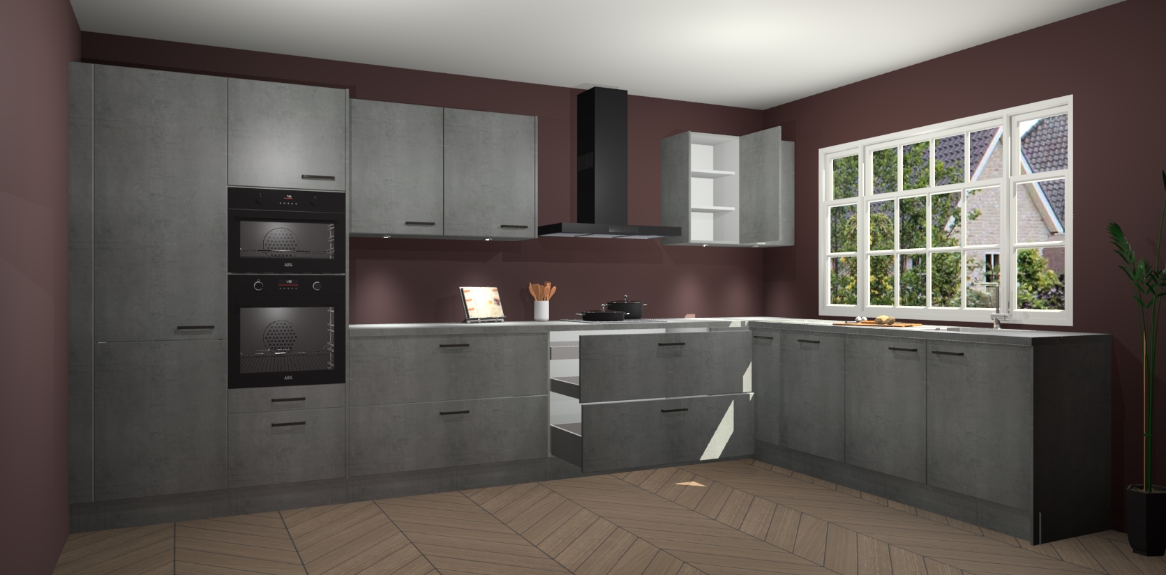 Kom dichtbij de perfecte keuken van uw dromen met de beton parelgrijs keuken Graz. Met een prachtige houtlook en eigentijds ontwerp, straalt deze keuken warmte en sfeer uit. Of u nu liefhebber bent van traditionele of moderne stijlen, er is genoeg ruimte om aan al uw behoeften te voldoen.