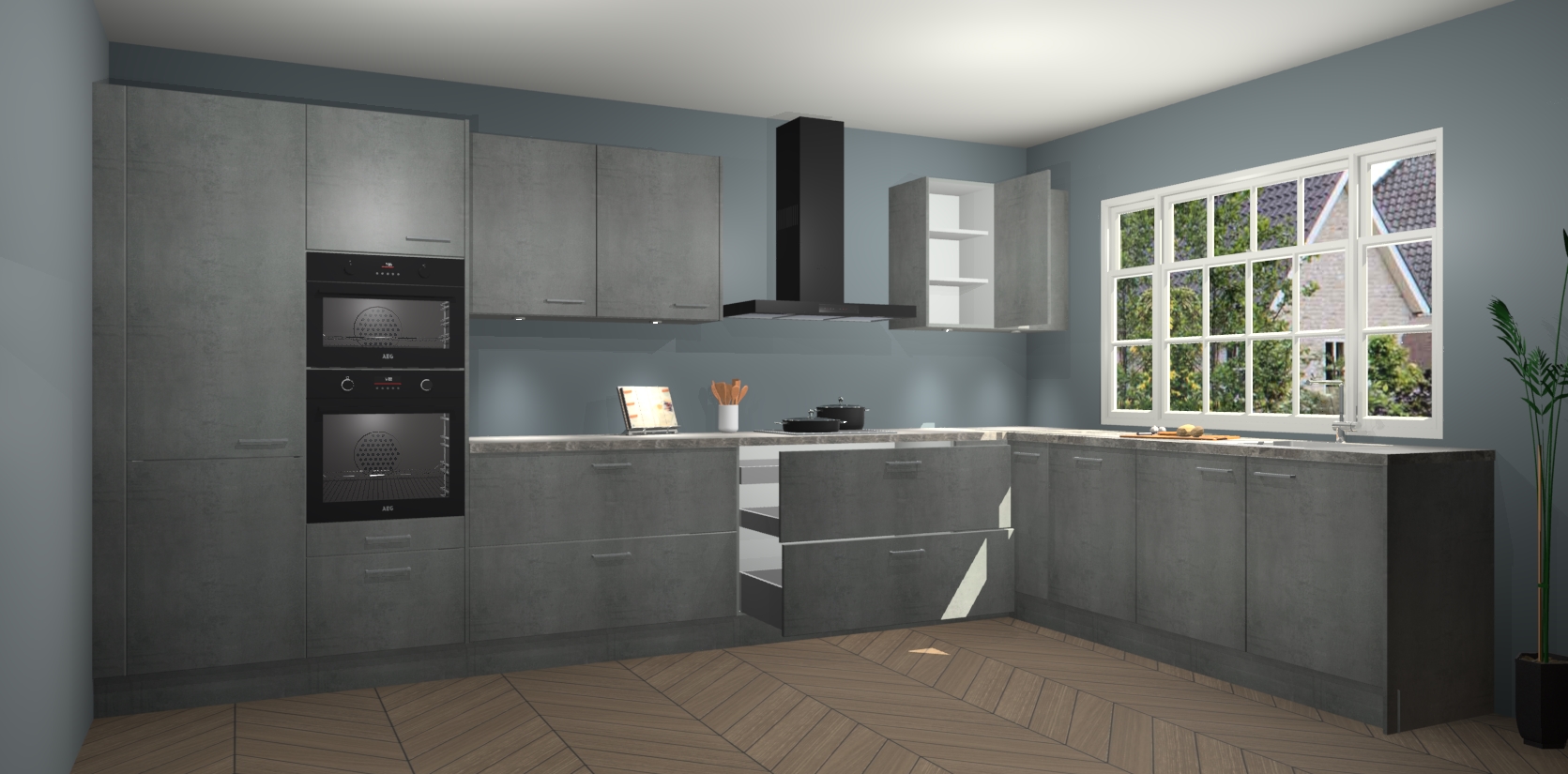 Kom dichtbij de perfecte keuken van uw dromen met de beton parelgrijs keuken Graz. Met een prachtige houtlook en eigentijds ontwerp, straalt deze keuken warmte en sfeer uit. Of u nu liefhebber bent van traditionele of moderne stijlen, er is genoeg ruimte om aan al uw behoeften te voldoen.