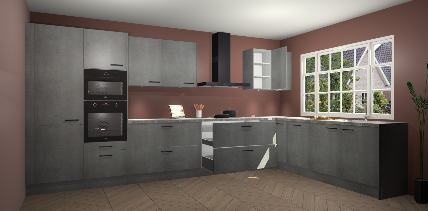 Kom dichtbij de perfecte keuken van uw dromen met de beton parelgrijs keuken Graz. Met een prachtige houtlook en eigentijds ontwerp, straalt deze keuken warmte en sfeer uit. Of u nu liefhebber bent van traditionele of moderne stijlen, er is genoeg ruimte om aan al uw behoeften te voldoen.