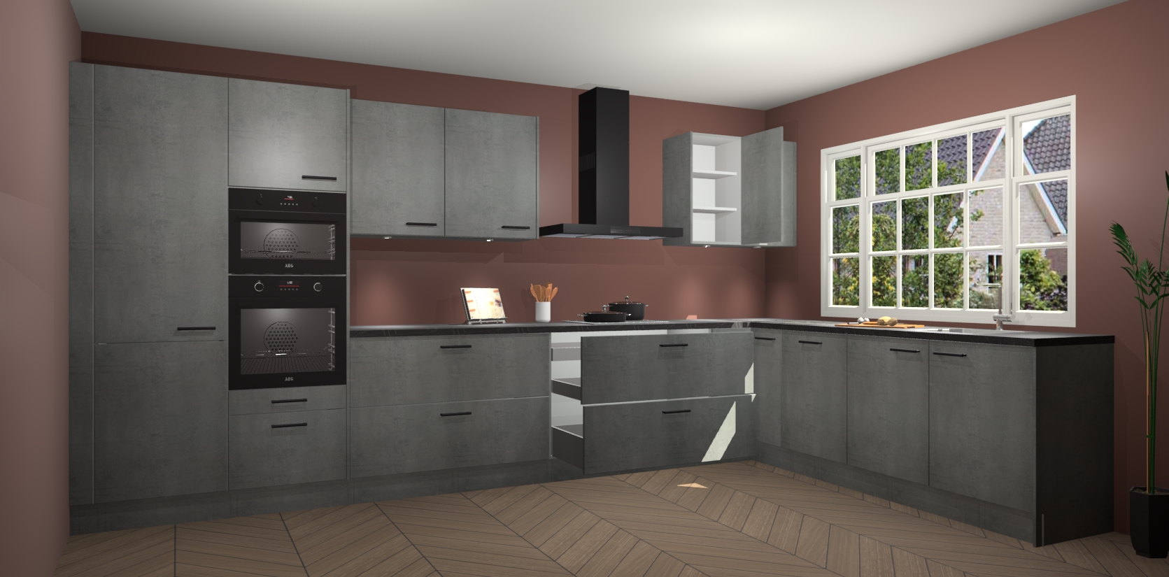 Heeft u nog apparatuur nodig? Geen probleem: de beton parelgrijs keuken Graz bevat vijf ingebouwde apparaten - een oven, inductiekookplaat, afzuigkap, vaatwasser en koelkast - die gemakkelijk kunnen worden bijgewerkt naar AEG na bestelling. En als dat nog niet genoeg is; onze kasten worden pre-geassembleerd geleverd en zijn verkrijgbaar tegen een vastgeroeste lage prijs! U hoeft nooit meer te zoeken naar goede kwaliteit en service want onze producten hebben echt Duitse kwaliteit.
