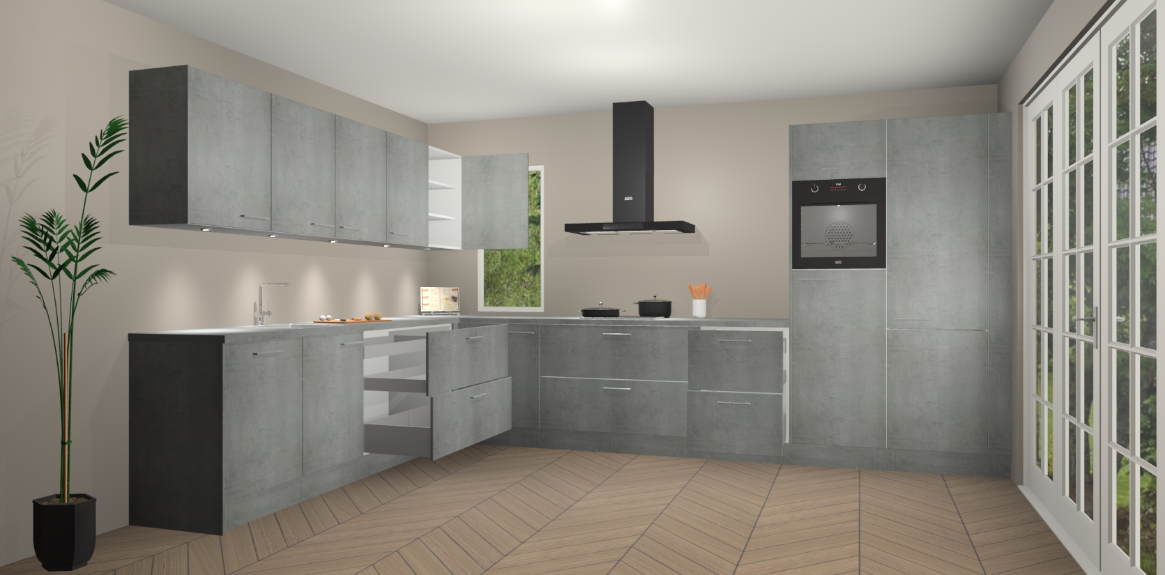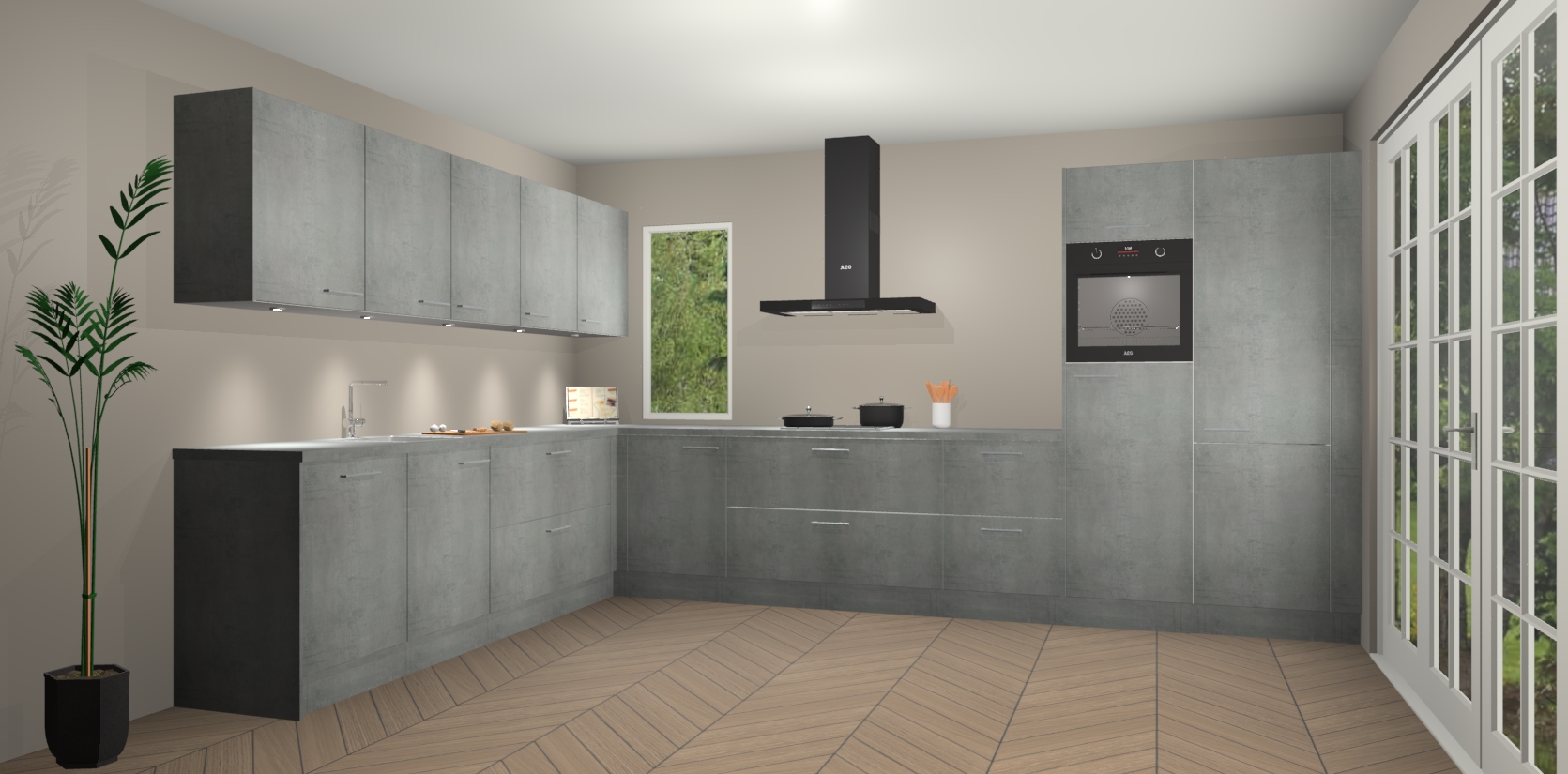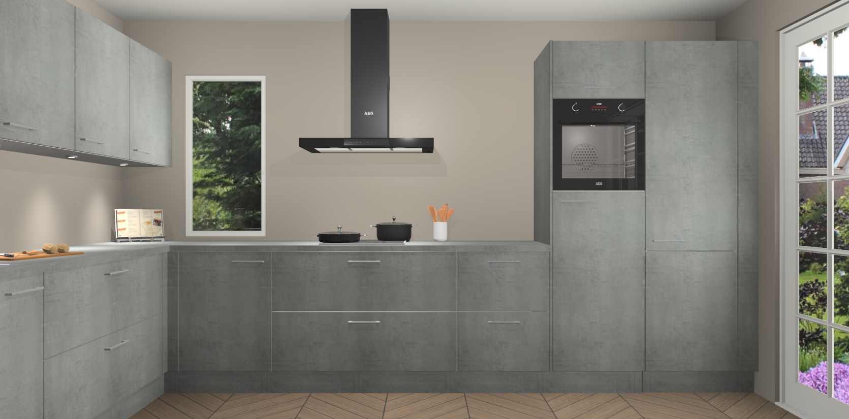 Heeft u nog apparatuur nodig? Geen probleem: de beton parelgrijs keuken Harare bevat vijf ingebouwde apparaten - een oven, inductiekookplaat, afzuigkap, vaatwasser en koelkast - die gemakkelijk kunnen worden bijgewerkt naar AEG na bestelling. En als dat nog niet genoeg is; onze kasten worden pre-geassembleerd geleverd en zijn verkrijgbaar tegen een vastgeroeste lage prijs! U hoeft nooit meer te zoeken naar goede kwaliteit en service want onze producten hebben echt Duitse kwaliteit.