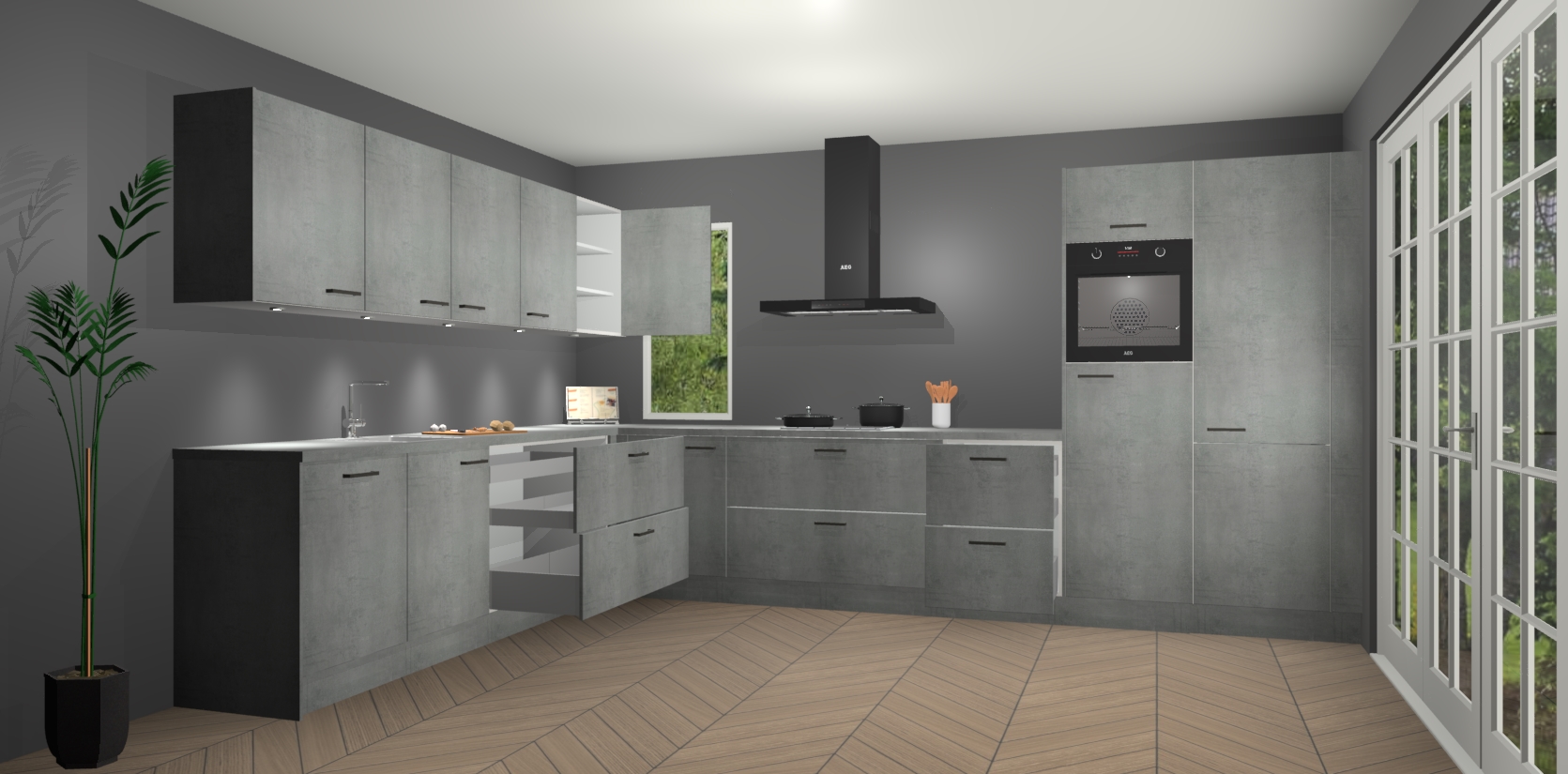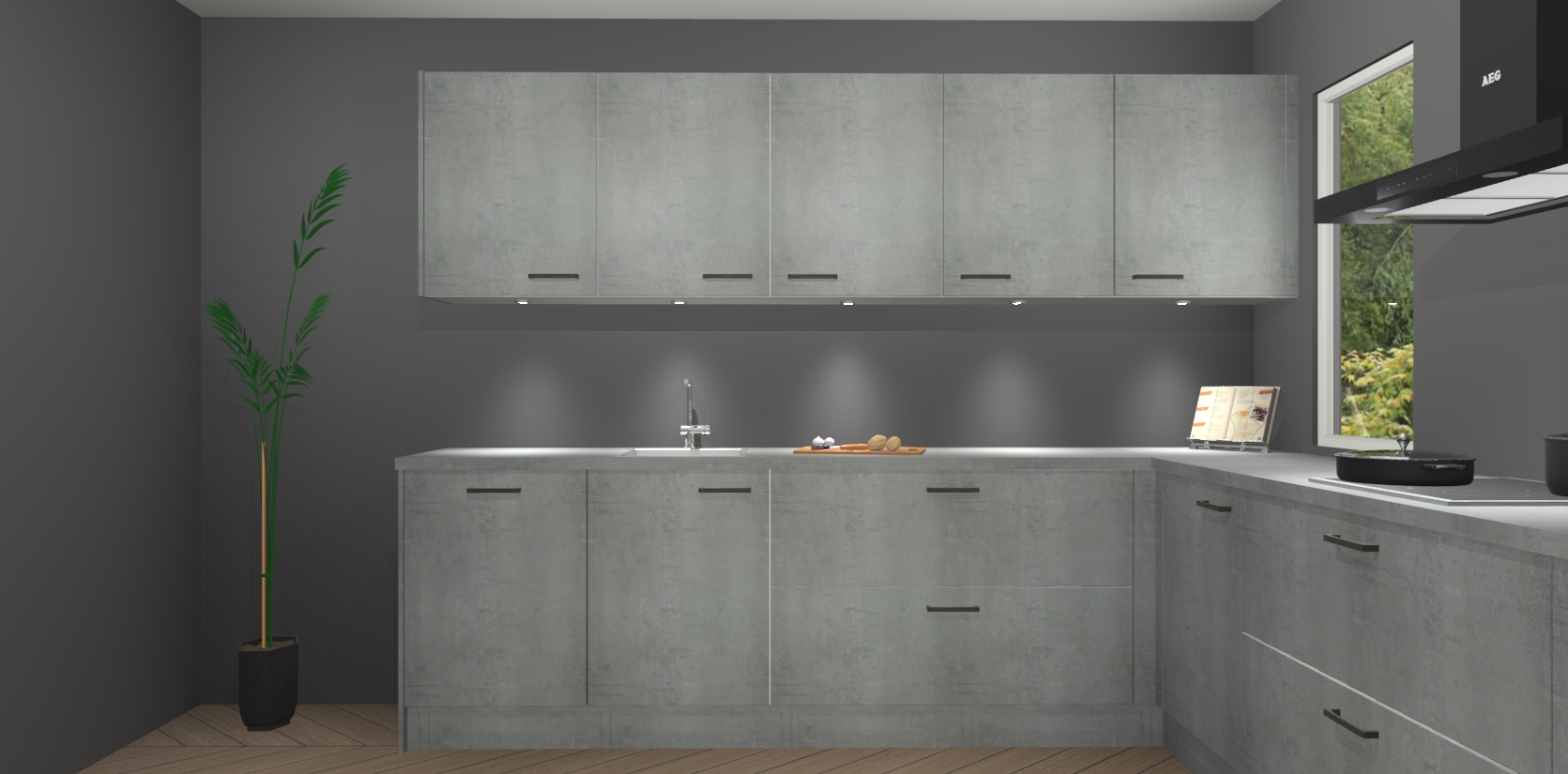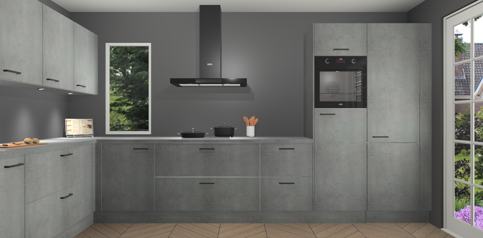 Heeft u nog apparatuur nodig? Geen probleem: de beton parelgrijs keuken Harare bevat vijf ingebouwde apparaten - een oven, inductiekookplaat, afzuigkap, vaatwasser en koelkast - die gemakkelijk kunnen worden bijgewerkt naar AEG na bestelling. En als dat nog niet genoeg is; onze kasten worden pre-geassembleerd geleverd en zijn verkrijgbaar tegen een vastgeroeste lage prijs! U hoeft nooit meer te zoeken naar goede kwaliteit en service want onze producten hebben echt Duitse kwaliteit.