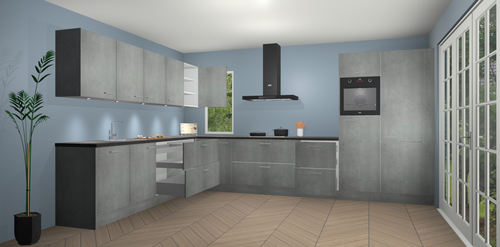 Heeft u nog apparatuur nodig? Geen probleem: de beton parelgrijs keuken Harare bevat vijf ingebouwde apparaten - een oven, inductiekookplaat, afzuigkap, vaatwasser en koelkast - die gemakkelijk kunnen worden bijgewerkt naar AEG na bestelling. En als dat nog niet genoeg is; onze kasten worden pre-geassembleerd geleverd en zijn verkrijgbaar tegen een vastgeroeste lage prijs! U hoeft nooit meer te zoeken naar goede kwaliteit en service want onze producten hebben echt Duitse kwaliteit.