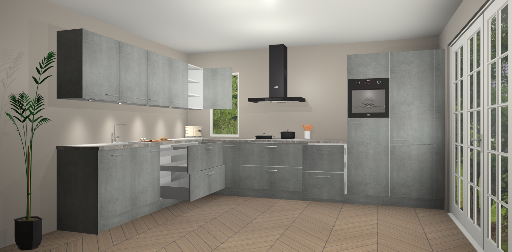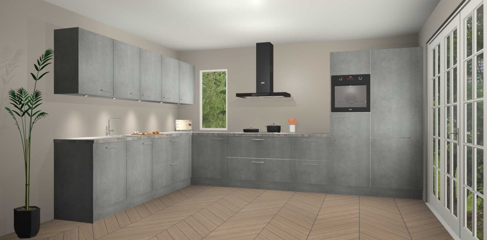 Heeft u nog apparatuur nodig? Geen probleem: de beton parelgrijs keuken Harare bevat vijf ingebouwde apparaten - een oven, inductiekookplaat, afzuigkap, vaatwasser en koelkast - die gemakkelijk kunnen worden bijgewerkt naar AEG na bestelling. En als dat nog niet genoeg is; onze kasten worden pre-geassembleerd geleverd en zijn verkrijgbaar tegen een vastgeroeste lage prijs! U hoeft nooit meer te zoeken naar goede kwaliteit en service want onze producten hebben echt Duitse kwaliteit.