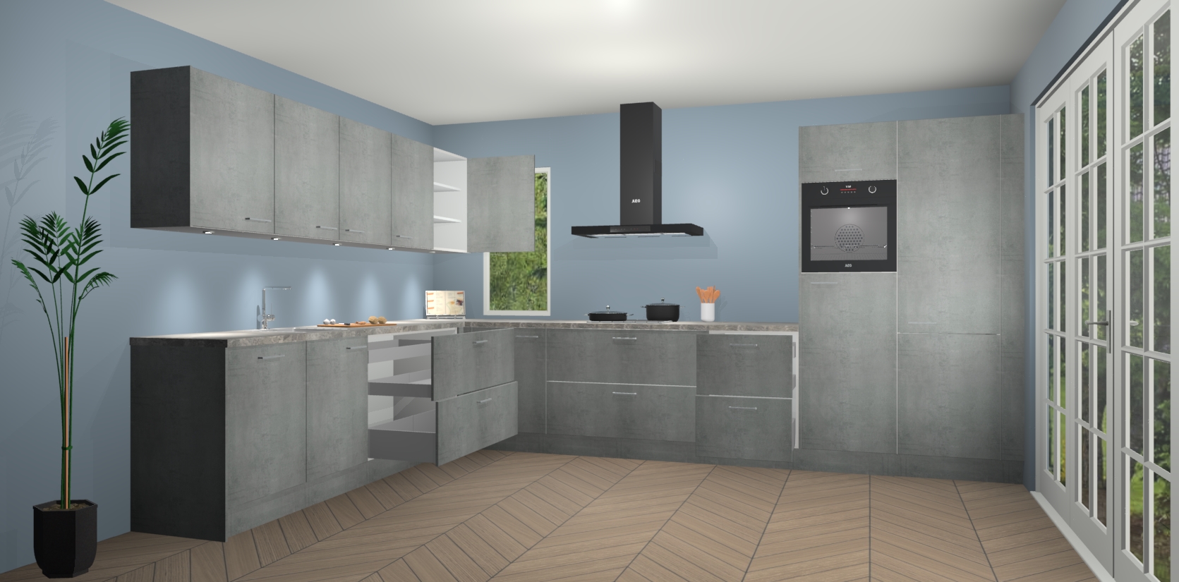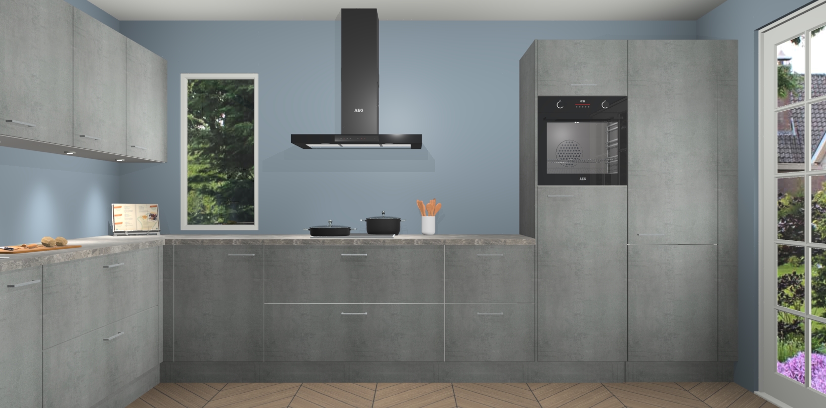 Heeft u nog apparatuur nodig? Geen probleem: de beton parelgrijs keuken Harare bevat vijf ingebouwde apparaten - een oven, inductiekookplaat, afzuigkap, vaatwasser en koelkast - die gemakkelijk kunnen worden bijgewerkt naar AEG na bestelling. En als dat nog niet genoeg is; onze kasten worden pre-geassembleerd geleverd en zijn verkrijgbaar tegen een vastgeroeste lage prijs! U hoeft nooit meer te zoeken naar goede kwaliteit en service want onze producten hebben echt Duitse kwaliteit.