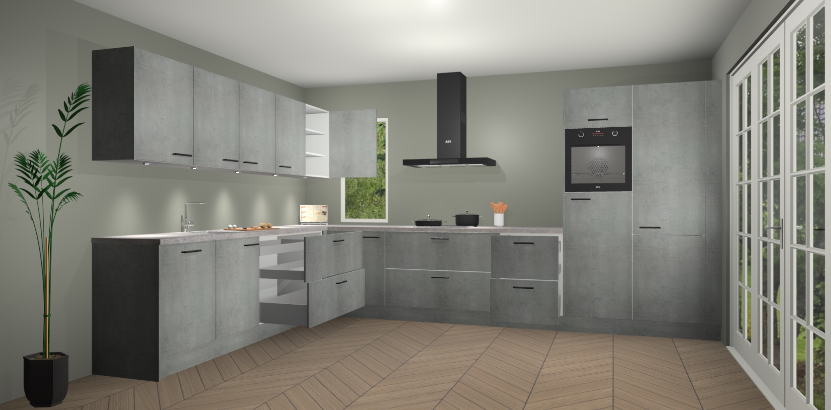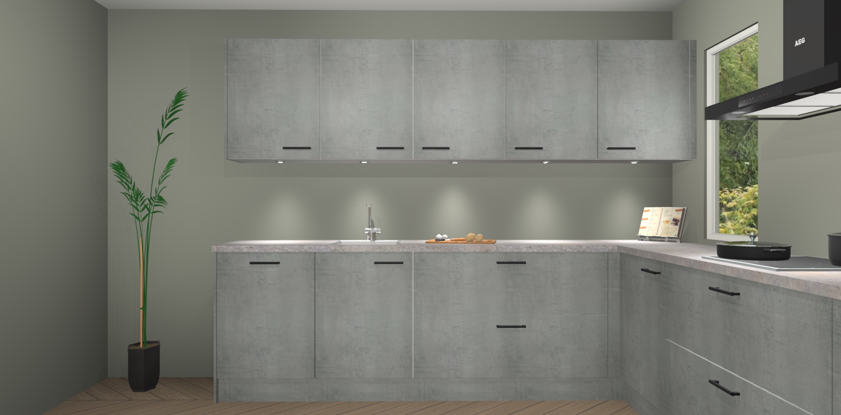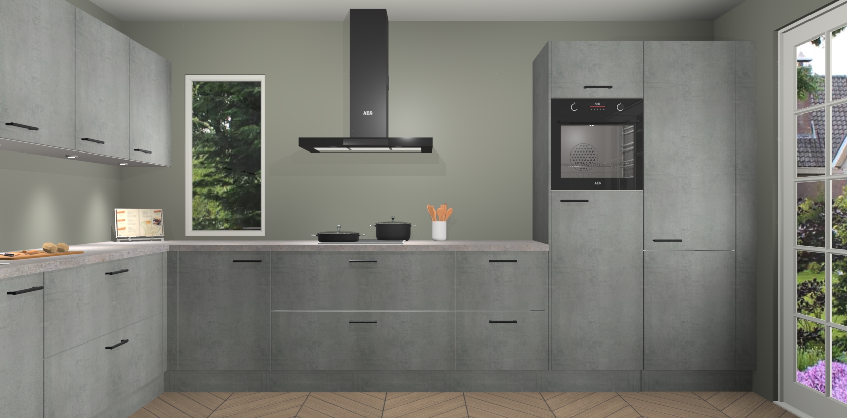Heeft u nog apparatuur nodig? Geen probleem: de beton parelgrijs keuken Harare bevat vijf ingebouwde apparaten - een oven, inductiekookplaat, afzuigkap, vaatwasser en koelkast - die gemakkelijk kunnen worden bijgewerkt naar AEG na bestelling. En als dat nog niet genoeg is; onze kasten worden pre-geassembleerd geleverd en zijn verkrijgbaar tegen een vastgeroeste lage prijs! U hoeft nooit meer te zoeken naar goede kwaliteit en service want onze producten hebben echt Duitse kwaliteit.