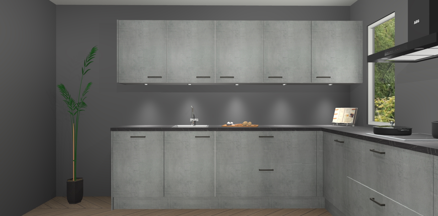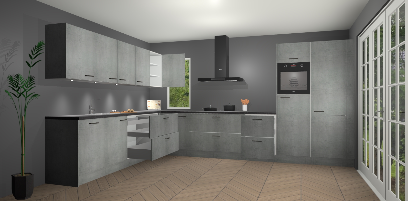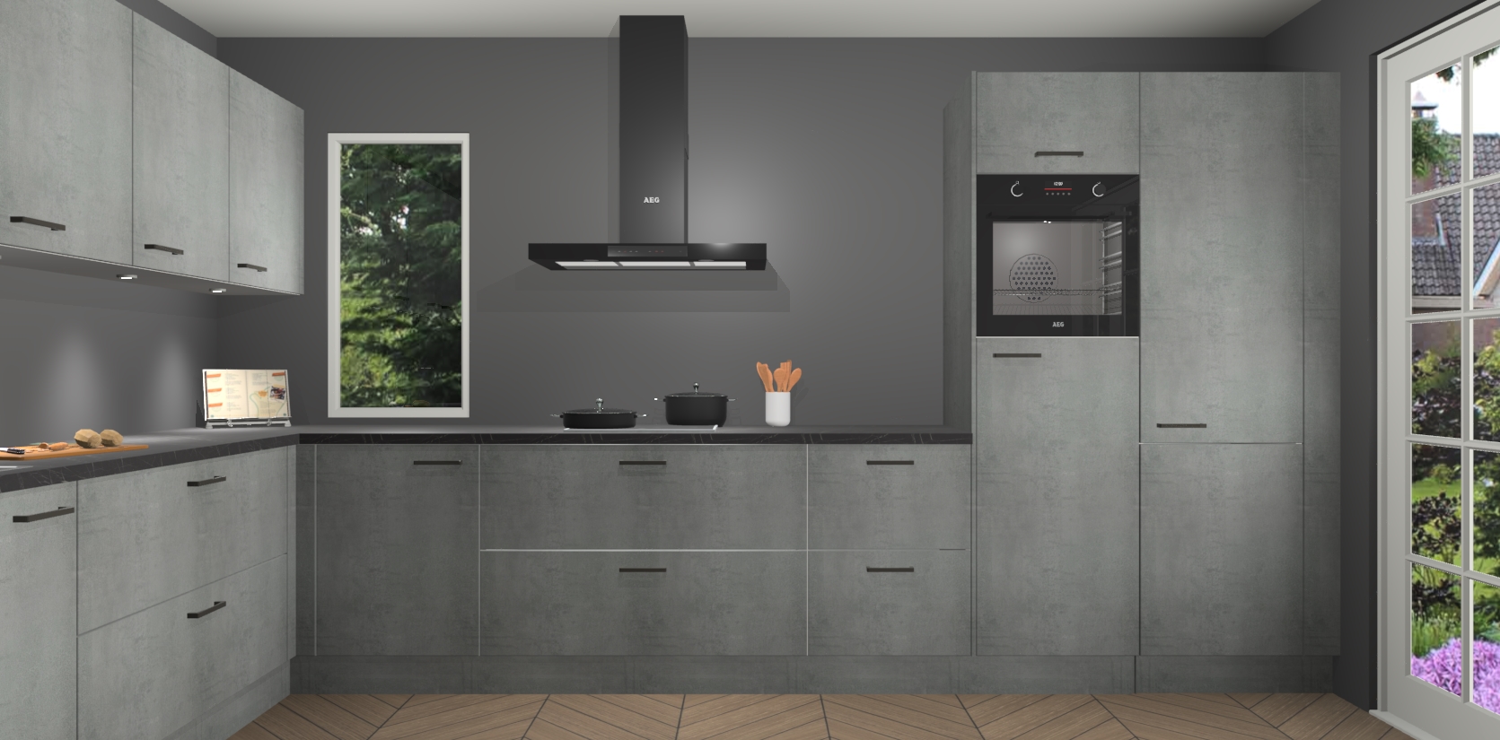 Heeft u nog apparatuur nodig? Geen probleem: de beton parelgrijs keuken Harare bevat vijf ingebouwde apparaten - een oven, inductiekookplaat, afzuigkap, vaatwasser en koelkast - die gemakkelijk kunnen worden bijgewerkt naar AEG na bestelling. En als dat nog niet genoeg is; onze kasten worden pre-geassembleerd geleverd en zijn verkrijgbaar tegen een vastgeroeste lage prijs! U hoeft nooit meer te zoeken naar goede kwaliteit en service want onze producten hebben echt Duitse kwaliteit.