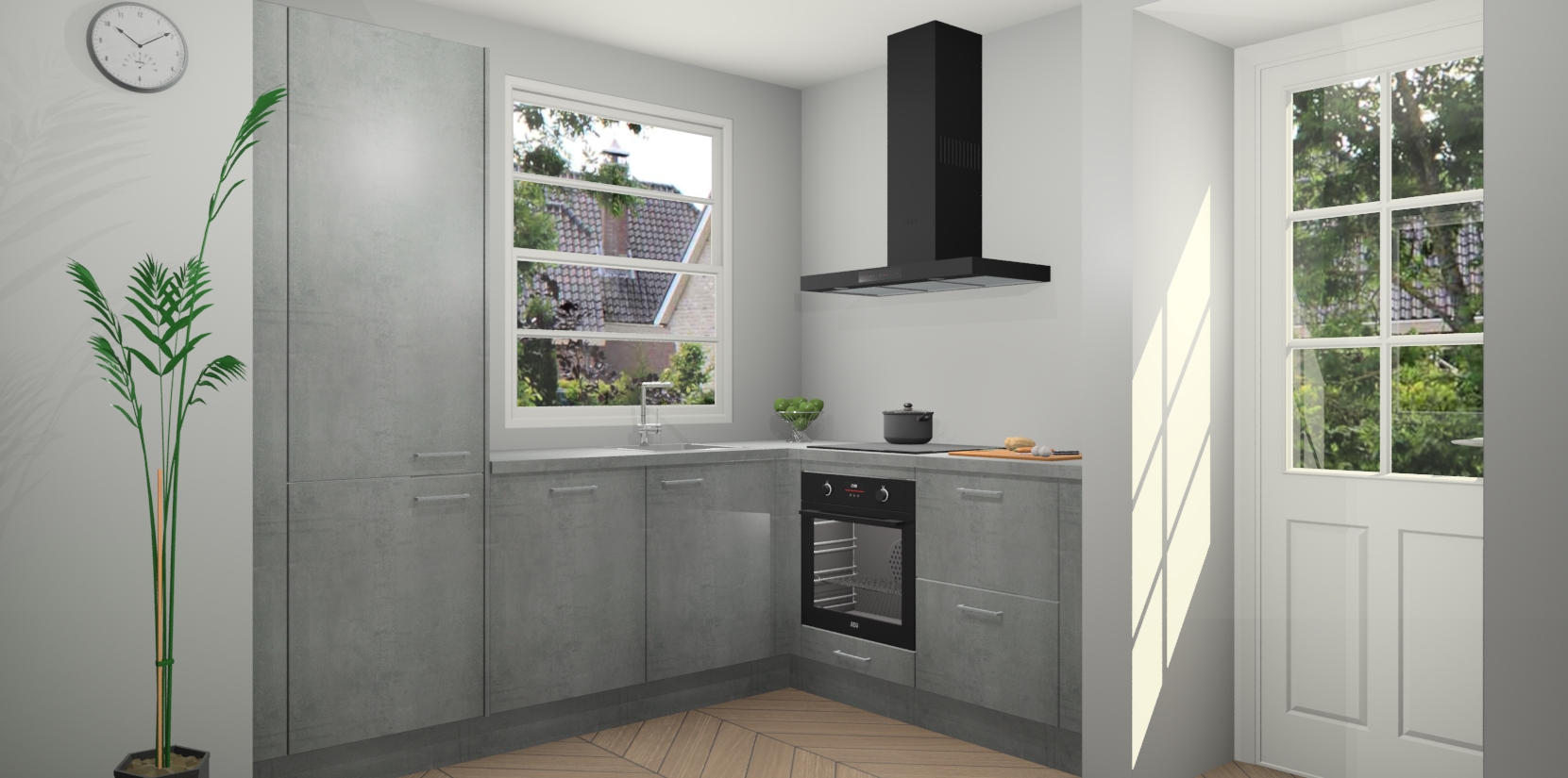 Plus: de Beton Parelgrijs keuken Harbin is kant en klaar voorzien van 5 inbouwapparaten. U krijgt er direct bij: een oven, inductiekookplaat, afzuigkap, vaatwasser én koelkast. En als dat nog niet luxueus genoeg is, heeft u nog de mogelijkheid om de apparaten te upgraden naar AEG of om uw oven te vervangen door een combimagnetron. Ook fijn van voordeel zijn de softclosing-deuren die ervoor zorgen dat u geen geluid hoeft te maken wanneer u weer uw koelkastdeurtjes dichtdoet!