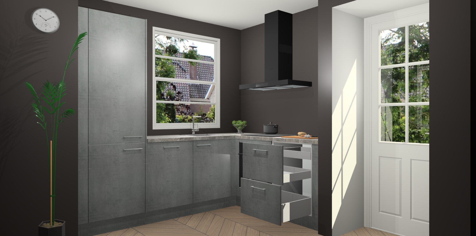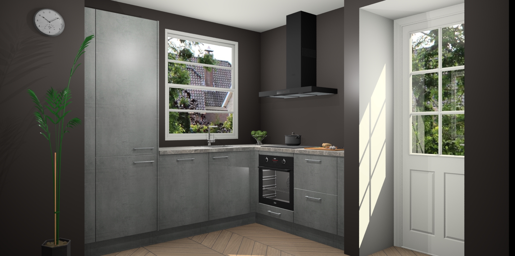 Wilt u een echte aanwinst voor uw keuken, maar bent u op zoek naar iets specialers dan de standaardkeukens? Kies dan voor de Beton Parelgrijs keuken Harbin! Dit prachtige hoekkeukenontwerp geeft u alle ruimte om optimaal te genieten van heerlijk koken. Het uitmuntende afwerkingsniveau, de fraaie houtstructuur en de sfeervolle zwarte grepen maken van de Beton Parelgrijs keuken Harbin de perfecte keuze voor zowel enthousiaste thuiskoks als design-minded interieurliefhebbers.