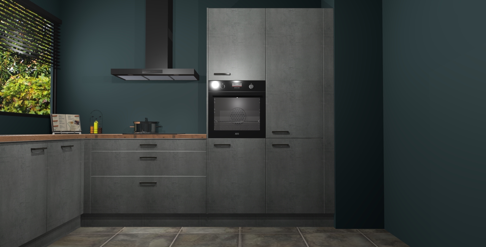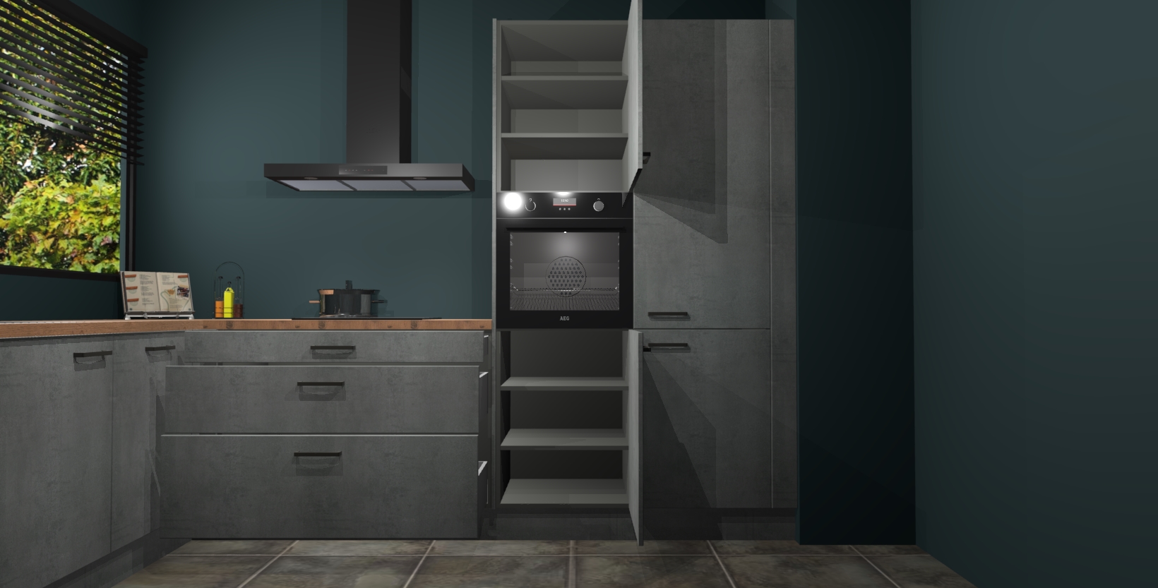 Met een modern, tijdloos design en ruime opslagruimte, zult u zich in no-time thuis voelen in uw nieuwe keuken. Uw leven wordt eenvoudiger met de soft-close deuren die voor het ultieme stille comfort zorgen - geen geluid dat u stoort terwijl u kookt. Ook is de keuken voorzien van 5 ingebouwde apparaten: een oven, inductie kookplaat, afzuigkap, vaatwasser en koelkast. Deze kunnen gemakkelijk na bestelling worden bijgewerkt naar AEG - waardoor uw luxe ervaring compleet is.