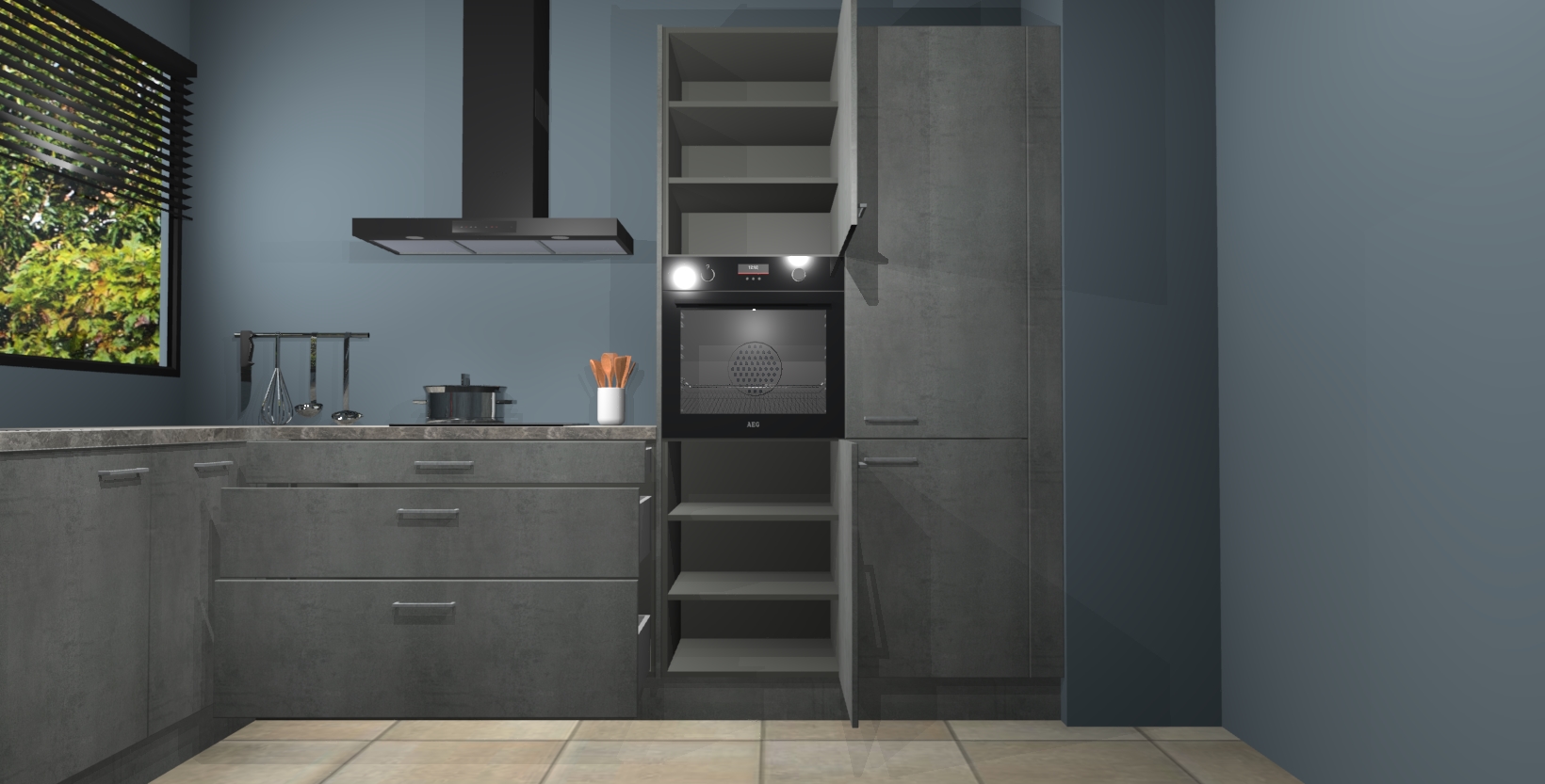 Met een modern, tijdloos design en ruime opslagruimte, zult u zich in no-time thuis voelen in uw nieuwe keuken. Uw leven wordt eenvoudiger met de soft-close deuren die voor het ultieme stille comfort zorgen - geen geluid dat u stoort terwijl u kookt. Ook is de keuken voorzien van 5 ingebouwde apparaten: een oven, inductie kookplaat, afzuigkap, vaatwasser en koelkast. Deze kunnen gemakkelijk na bestelling worden bijgewerkt naar AEG - waardoor uw luxe ervaring compleet is.