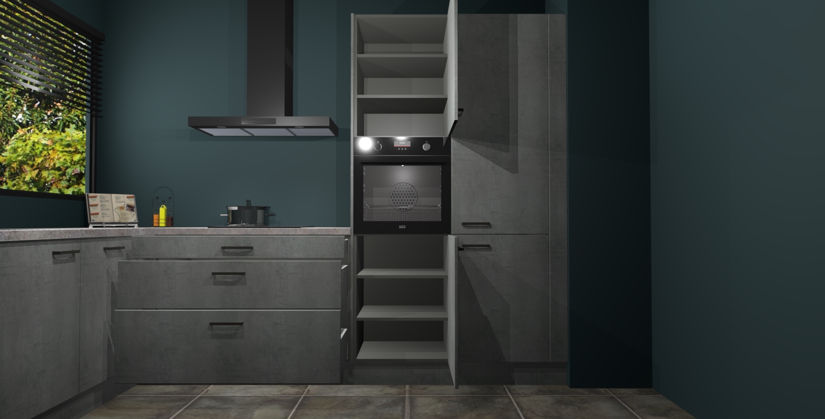 Met een modern, tijdloos design en ruime opslagruimte, zult u zich in no-time thuis voelen in uw nieuwe keuken. Uw leven wordt eenvoudiger met de soft-close deuren die voor het ultieme stille comfort zorgen - geen geluid dat u stoort terwijl u kookt. Ook is de keuken voorzien van 5 ingebouwde apparaten: een oven, inductie kookplaat, afzuigkap, vaatwasser en koelkast. Deze kunnen gemakkelijk na bestelling worden bijgewerkt naar AEG - waardoor uw luxe ervaring compleet is.