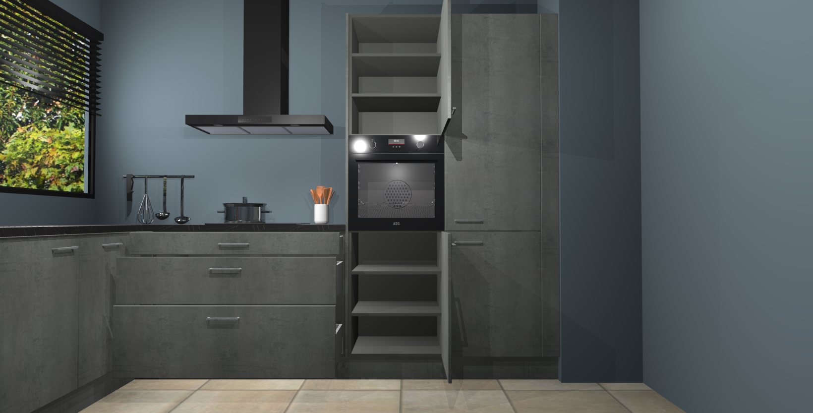 Met een modern, tijdloos design en ruime opslagruimte, zult u zich in no-time thuis voelen in uw nieuwe keuken. Uw leven wordt eenvoudiger met de soft-close deuren die voor het ultieme stille comfort zorgen - geen geluid dat u stoort terwijl u kookt. Ook is de keuken voorzien van 5 ingebouwde apparaten: een oven, inductie kookplaat, afzuigkap, vaatwasser en koelkast. Deze kunnen gemakkelijk na bestelling worden bijgewerkt naar AEG - waardoor uw luxe ervaring compleet is.