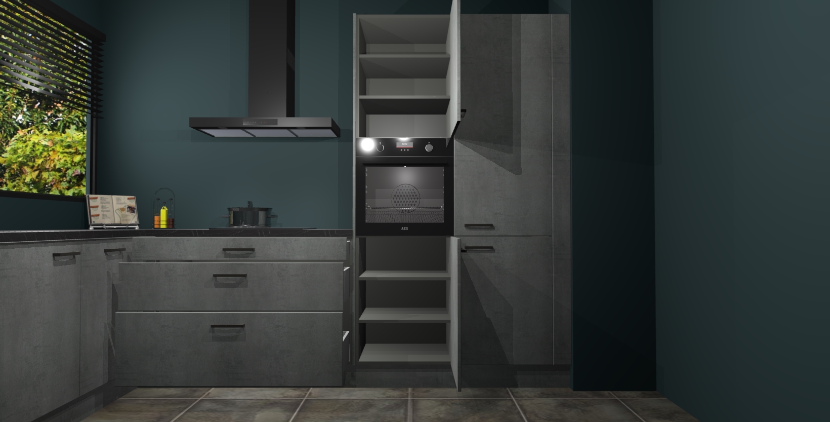 Met een modern, tijdloos design en ruime opslagruimte, zult u zich in no-time thuis voelen in uw nieuwe keuken. Uw leven wordt eenvoudiger met de soft-close deuren die voor het ultieme stille comfort zorgen - geen geluid dat u stoort terwijl u kookt. Ook is de keuken voorzien van 5 ingebouwde apparaten: een oven, inductie kookplaat, afzuigkap, vaatwasser en koelkast. Deze kunnen gemakkelijk na bestelling worden bijgewerkt naar AEG - waardoor uw luxe ervaring compleet is.