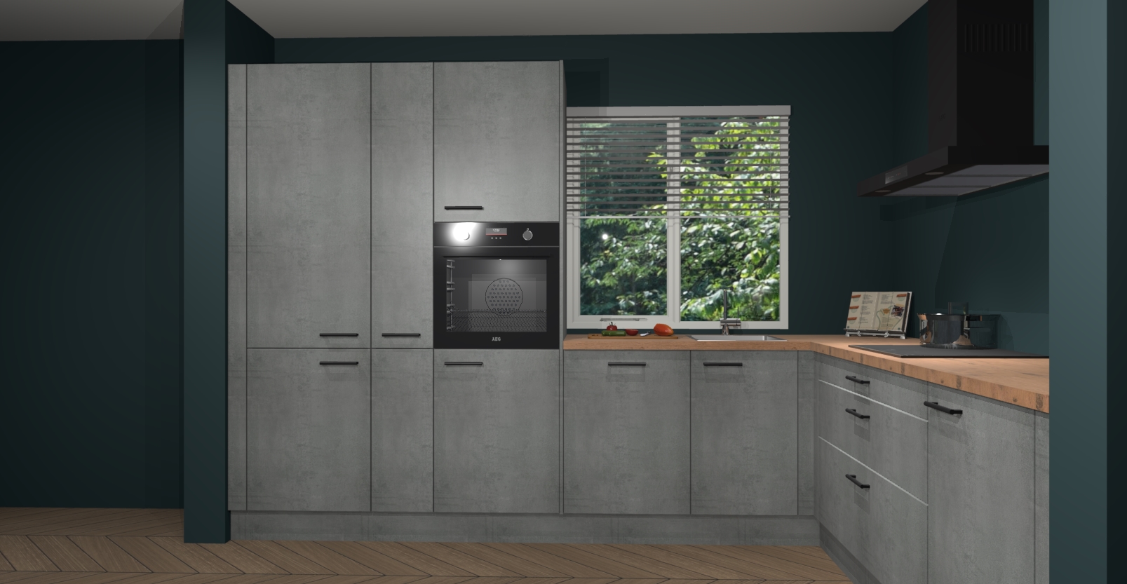 Met een modern, tijdloos design en ruime opslagruimte, zult u zich in no-time thuis voelen in uw nieuwe keuken. Uw leven wordt eenvoudiger met de soft-close deuren die voor het ultieme stille comfort zorgen - geen geluid dat u stoort terwijl u kookt. Ook is de keuken voorzien van 5 ingebouwde apparaten: een oven, inductie kookplaat, afzuigkap, vaatwasser en koelkast. Deze kunnen gemakkelijk na bestelling worden bijgewerkt naar AEG - waardoor uw luxe ervaring compleet is.