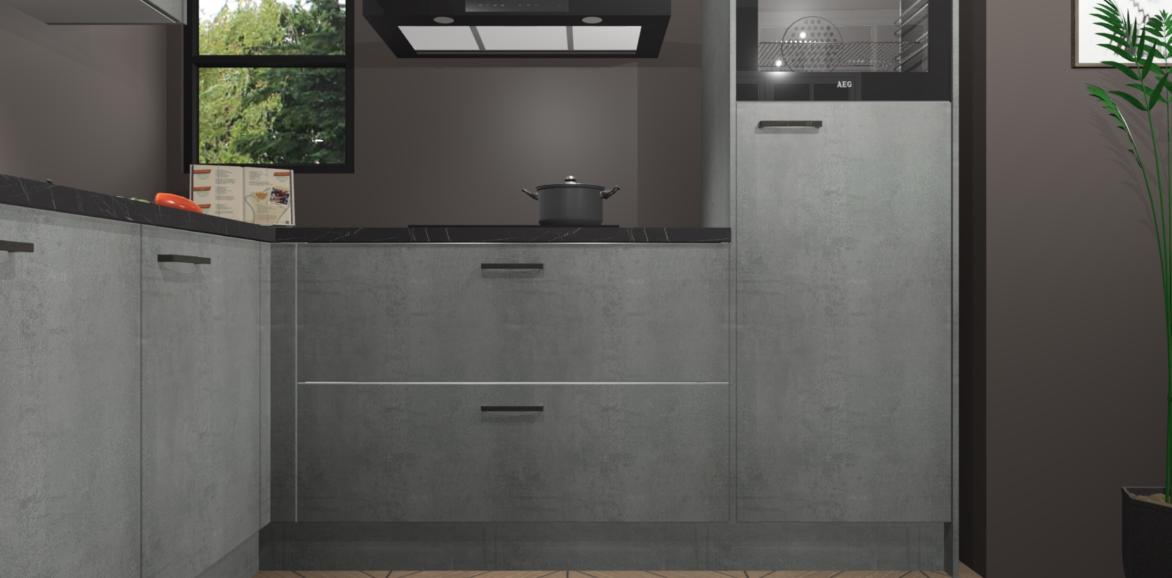 Inclusief plinten, stelpoten en werkblad