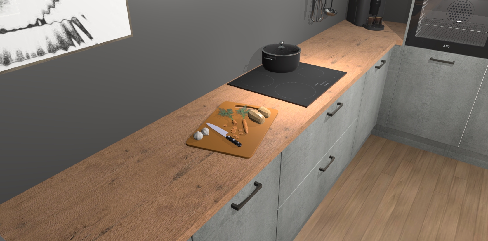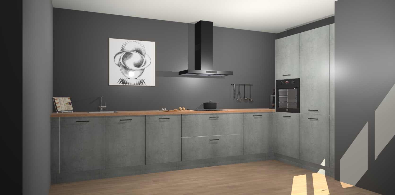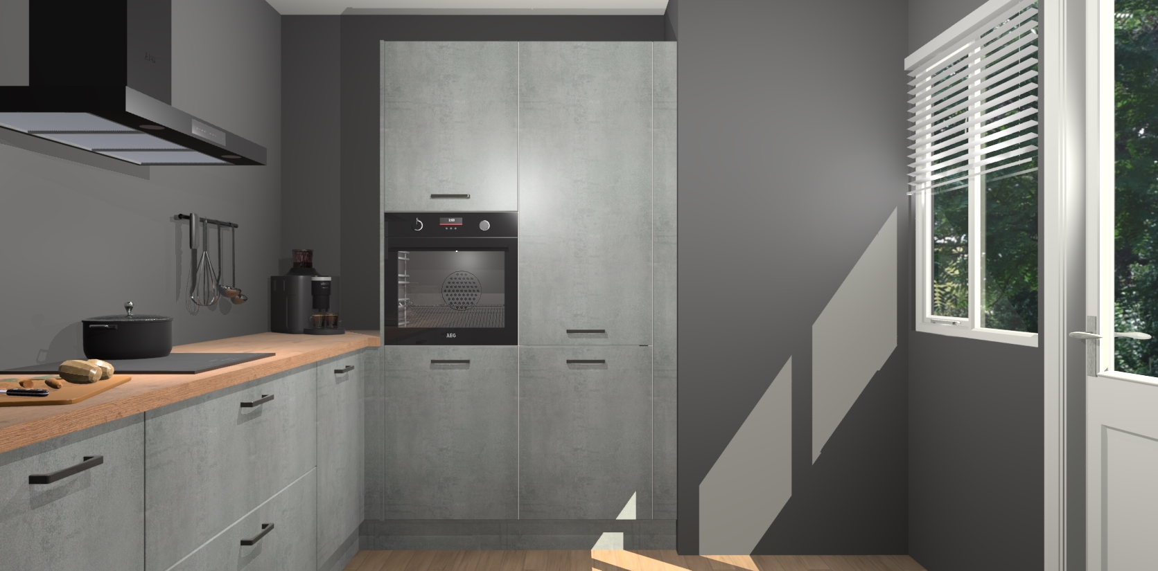 Welkom bij de Beton Paregrijs keuken Khao Lak. Deze prachtige keuken zal de komende jaren het middelpunt van de belangstelling in uw huis zijn. Uitgerust met vijf inbouwapparaten komt u nooit kookgereedschap tekort. Bovendien geeft de warme houtlook elke ruimte een uitnodigende en tijdloze uitstraling.